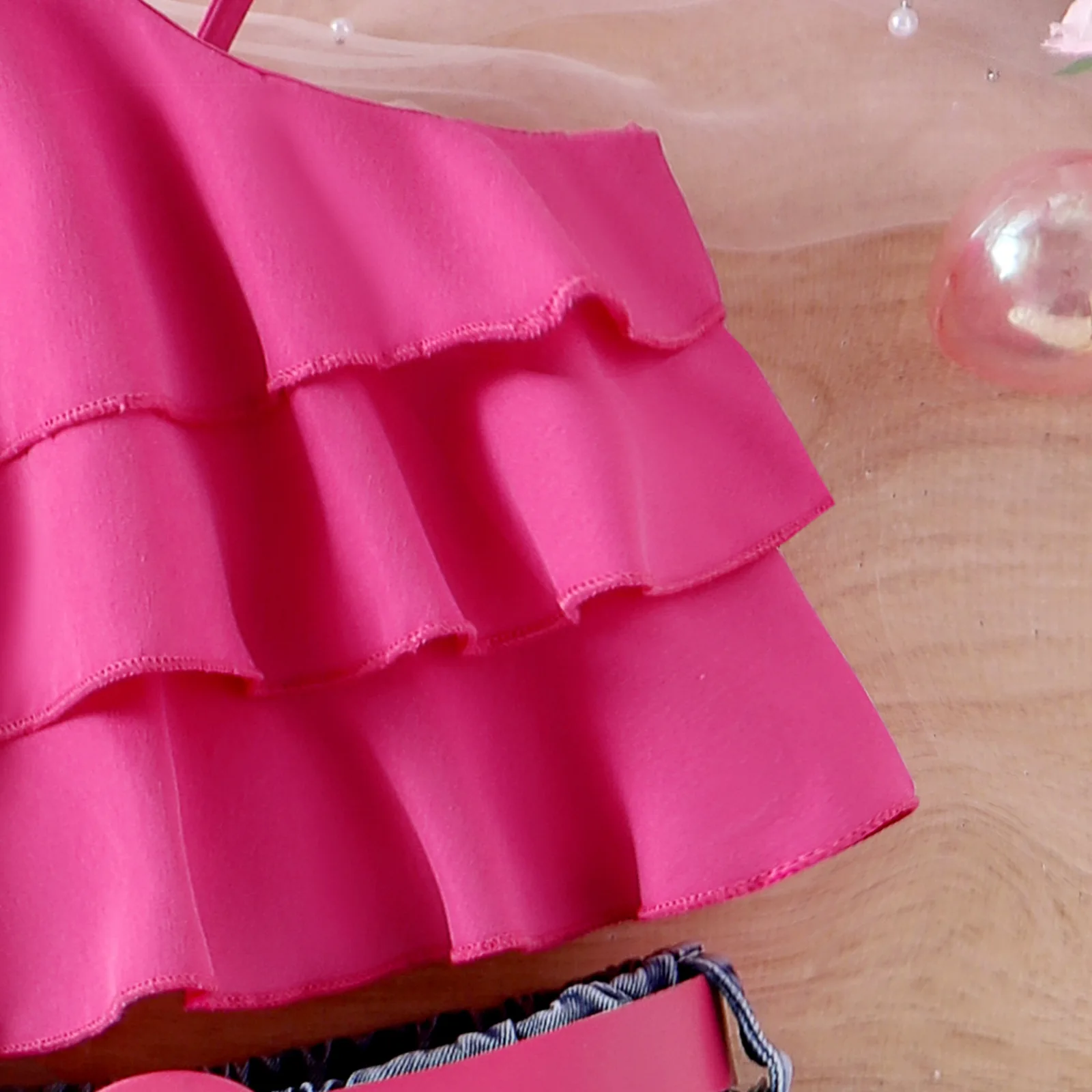 Conjuntos de ropa de verano para niñas de 3 piezas, Tops lisos sin mangas a la moda coreana para bebés, pantalones cortos de flores de mezclilla y cinturón, ropa de Boutique para niños B051