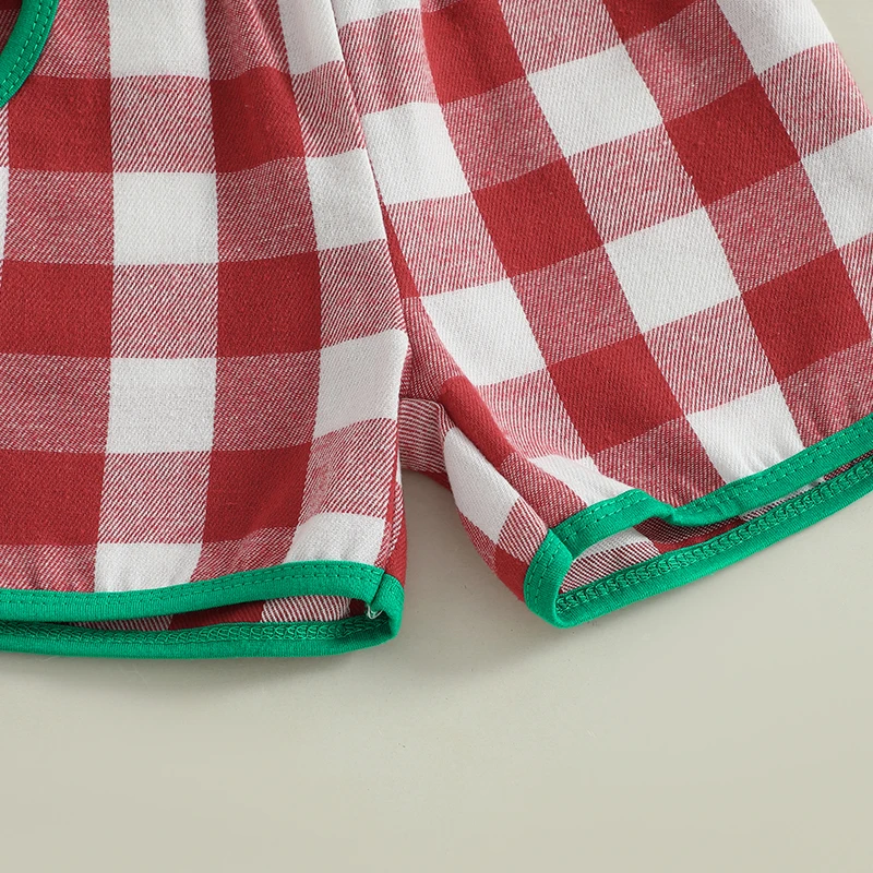 Trajes de verano para niños, camisetas de manga corta con cuello redondo y pantalones cortos de cintura elástica a cuadros, conjunto de 2 uds.