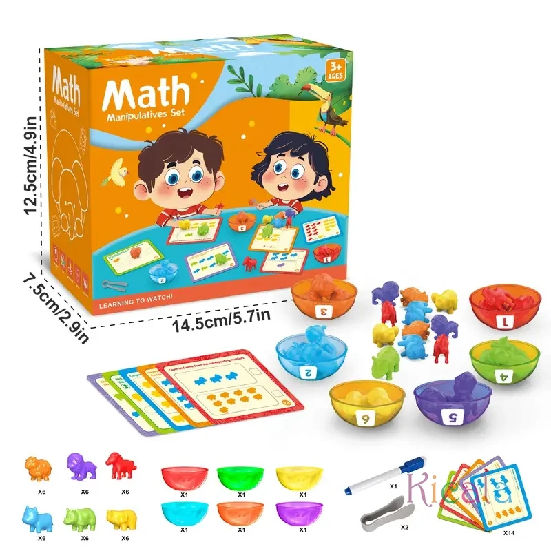 Conteo de juguetes de animales, juegos a juego, juguete educativo de aprendizaje STEM, clasificación de colores, cuenco apilable, juguetes sensoriales, regalo de cumpleaños