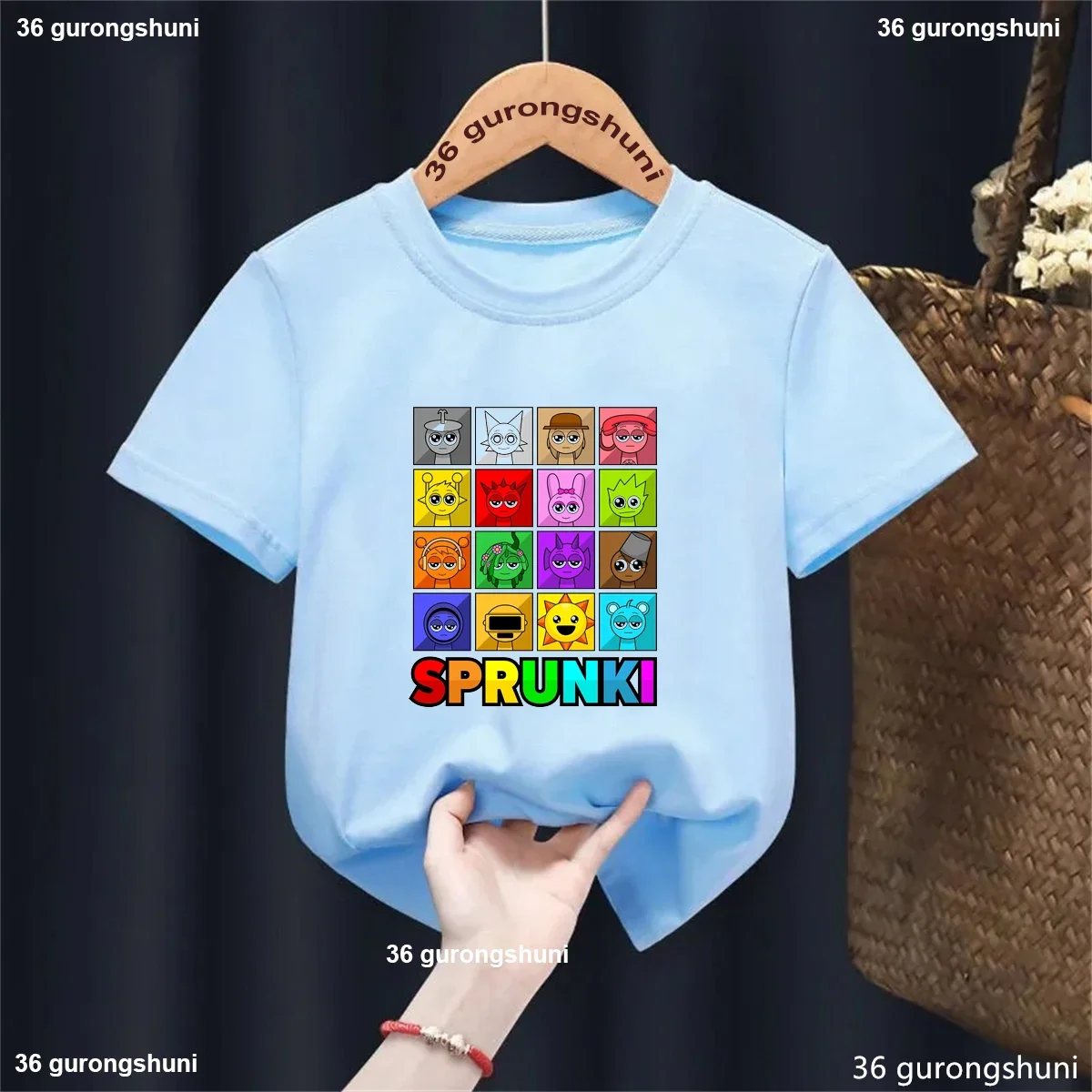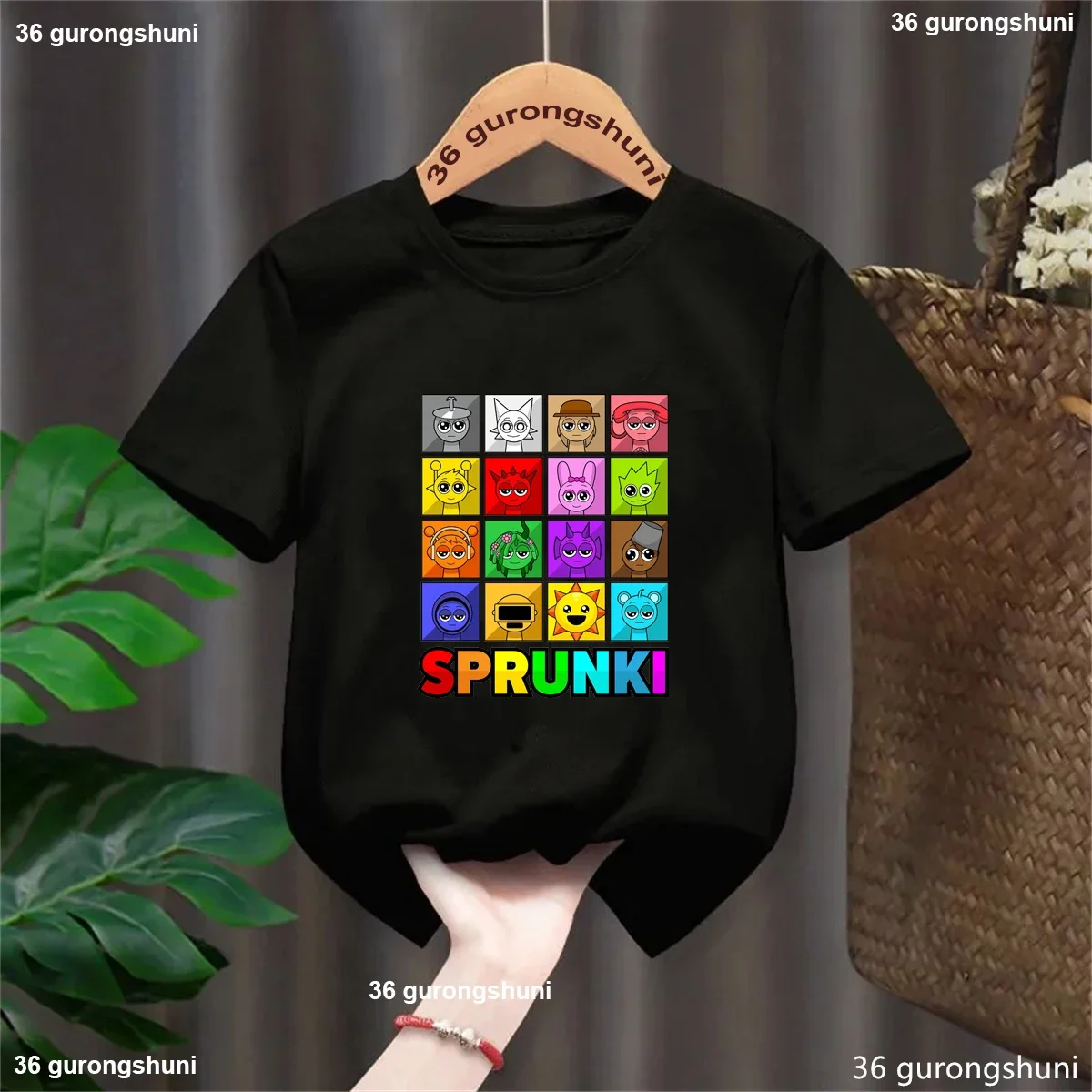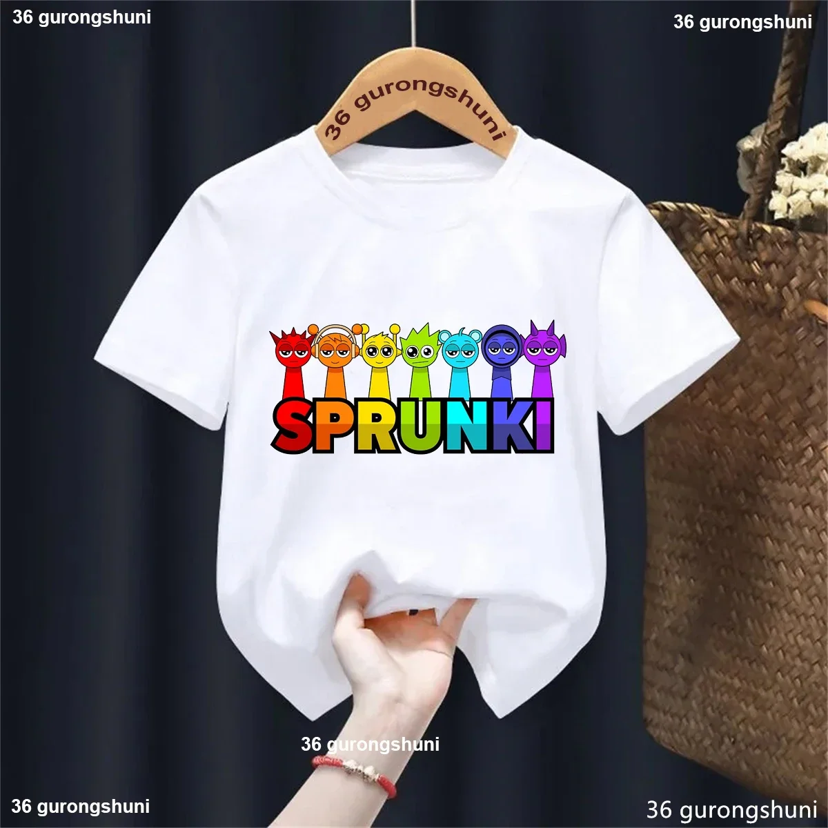Cool Sprunki-Camiseta con estampado con dibujo de juego de música para niñas y niños, ropa Kawaii para niños, camisetas lisas de manga corta de verano