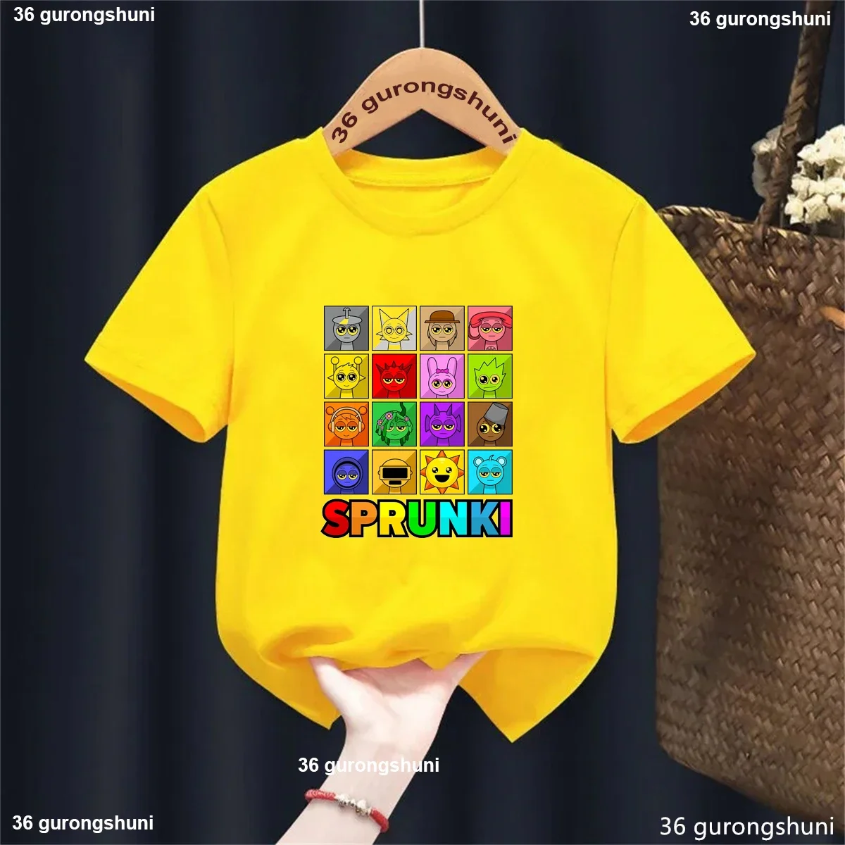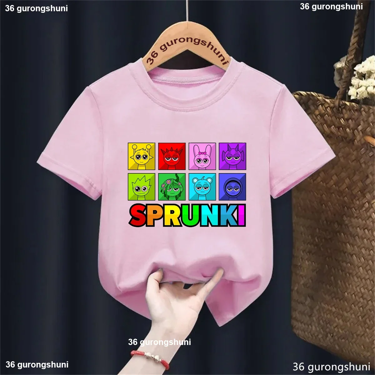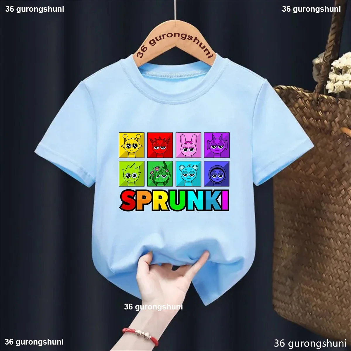 Cool Sprunki-Camiseta con estampado con dibujo de juego de música para niñas y niños, ropa Kawaii para niños, camisetas lisas de manga corta de verano