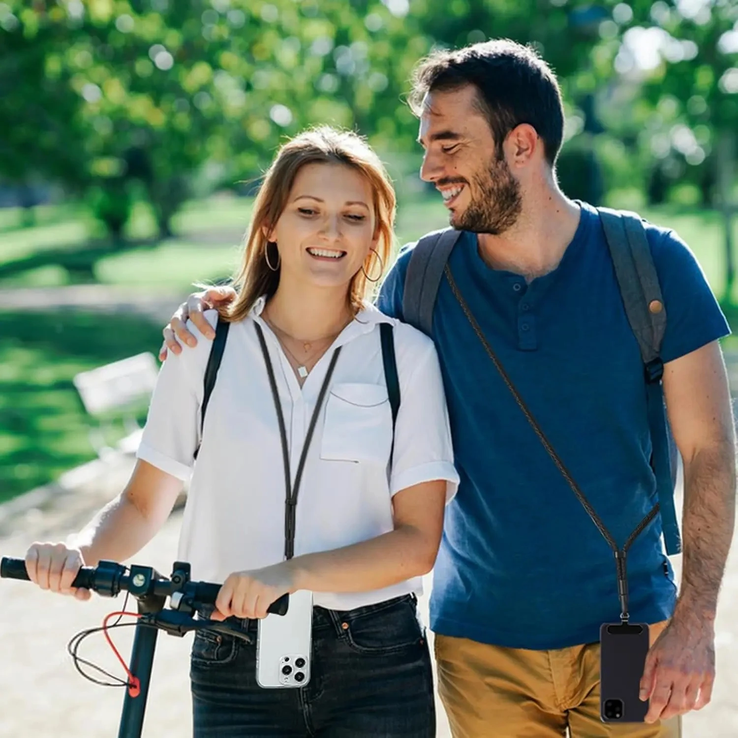 Cordón desmontable para teléfono, anticaída mejorada 360 ° Estuches ajustables del teléfono de la correa cruzada del cuello de la rotación con el clip universal
