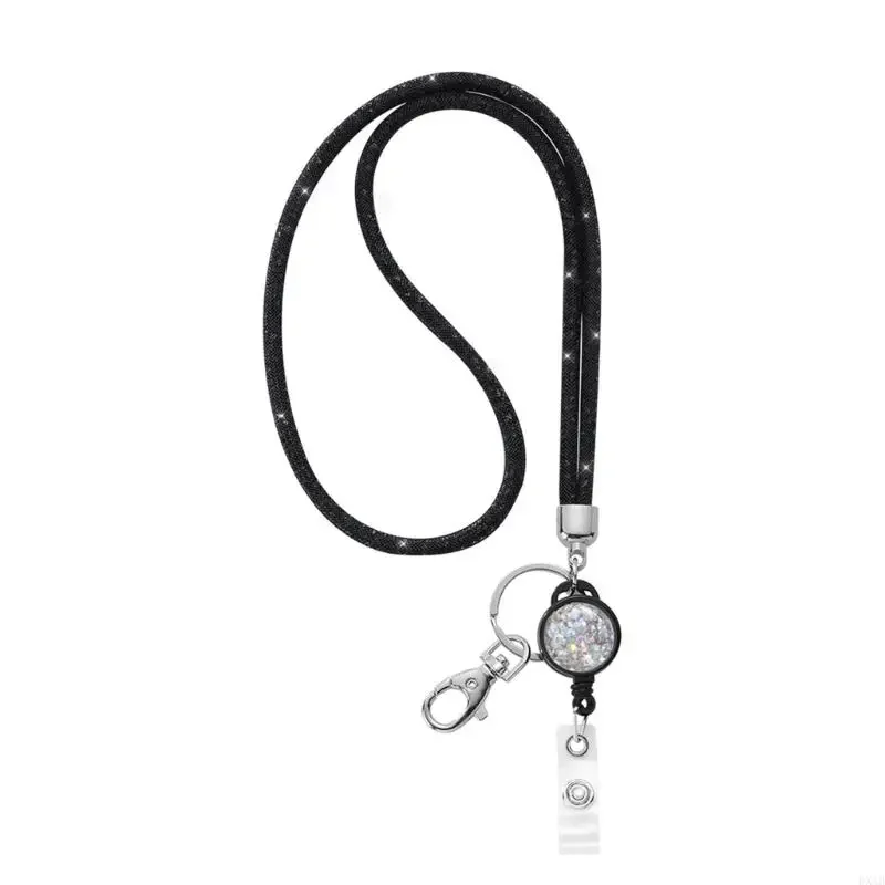 Cordón retráctil con diamantes de imitación brillantes para profesores, mujeres y cualquier persona que busque un bonito accesorio para cordones para credenciales, tarjeteros y llaves.