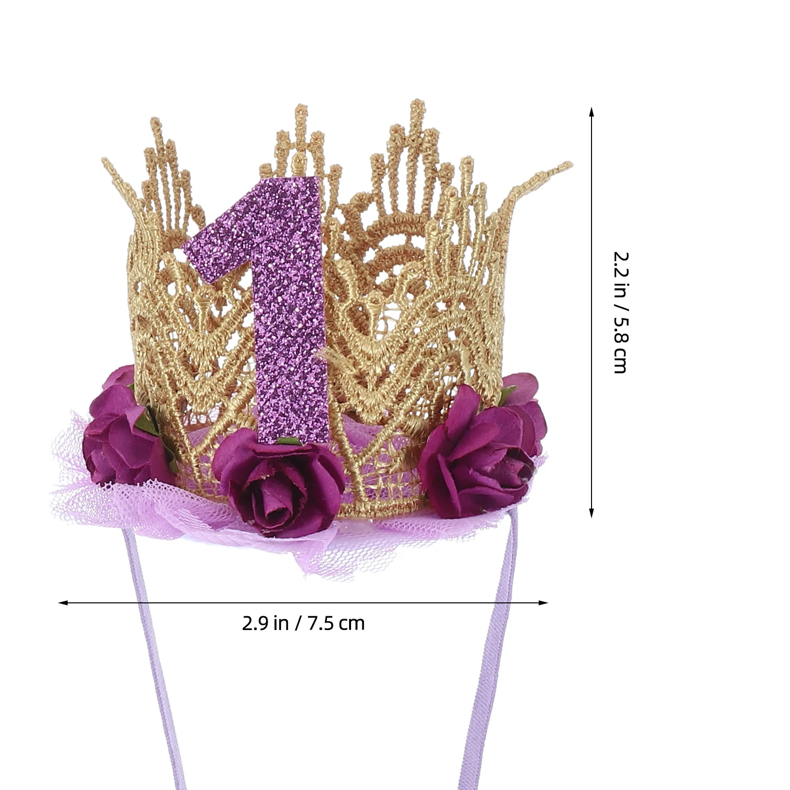 - Decoración perfecta para la cabeza del bebé para la primera fiesta de cumpleaños del bebé. 1 corona para el primer cumpleaños del bebé, tocado de malla de encaje con flores rosas, gorro de 1er cumpleaños, suministros para fiestas, sombrero de cumpleaños, accesorios para el cabello (púrpura)