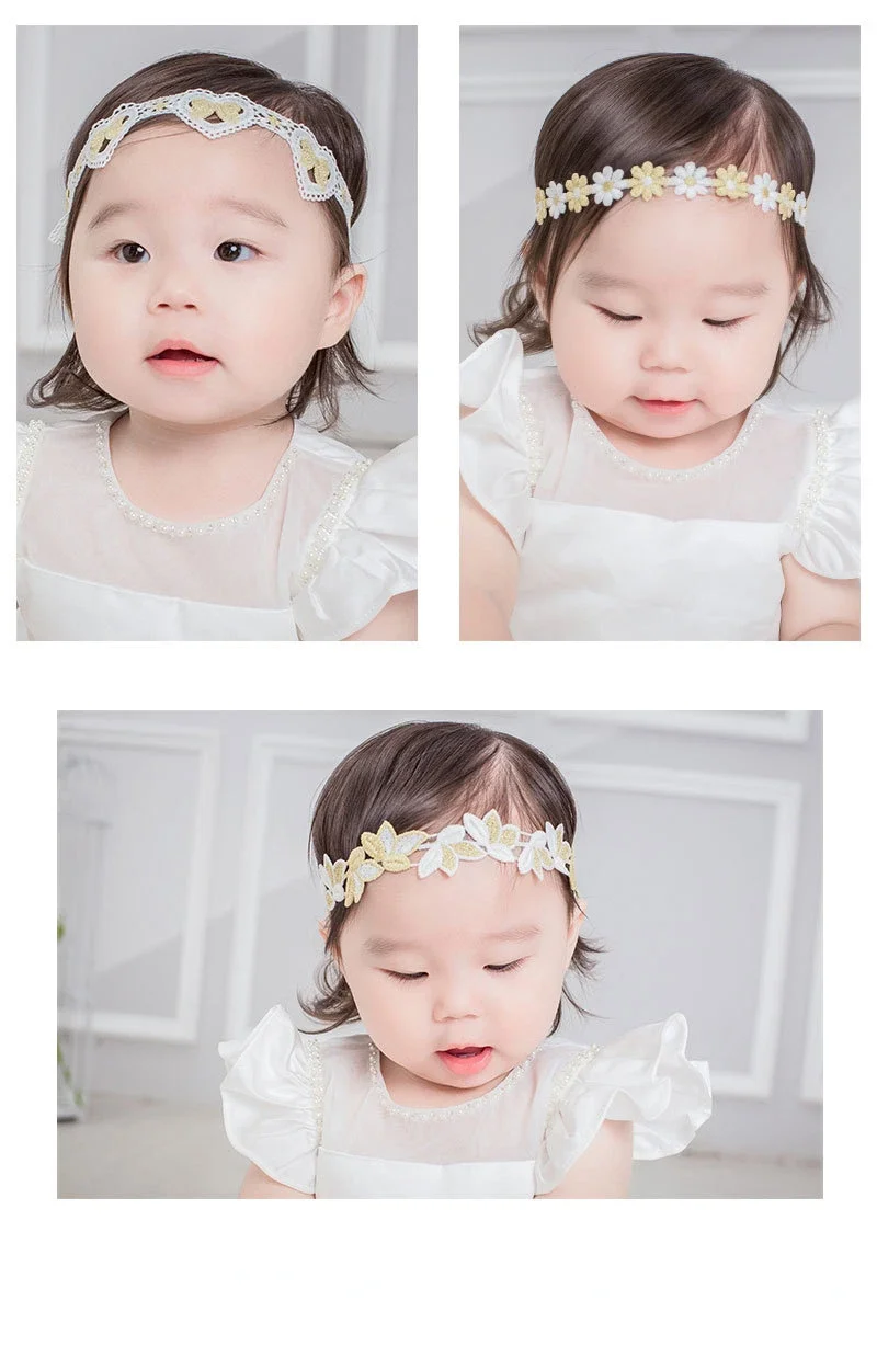 Descripción: 100 nuevo y de alta calidad Colores: como se muestra en la imagen Material: encaje Tamaño: la banda para la cabeza es elástica, adecuada para circunferencia de la cabeza de 38 cm a 48 cm, adecuada para niños de 0 a 3 años. (1 pulgada=2,54 cm 1 cm=0,39 pulgadas) Paquete: bolso de opp El paquete incluye: 2 pinzas para el cabello.