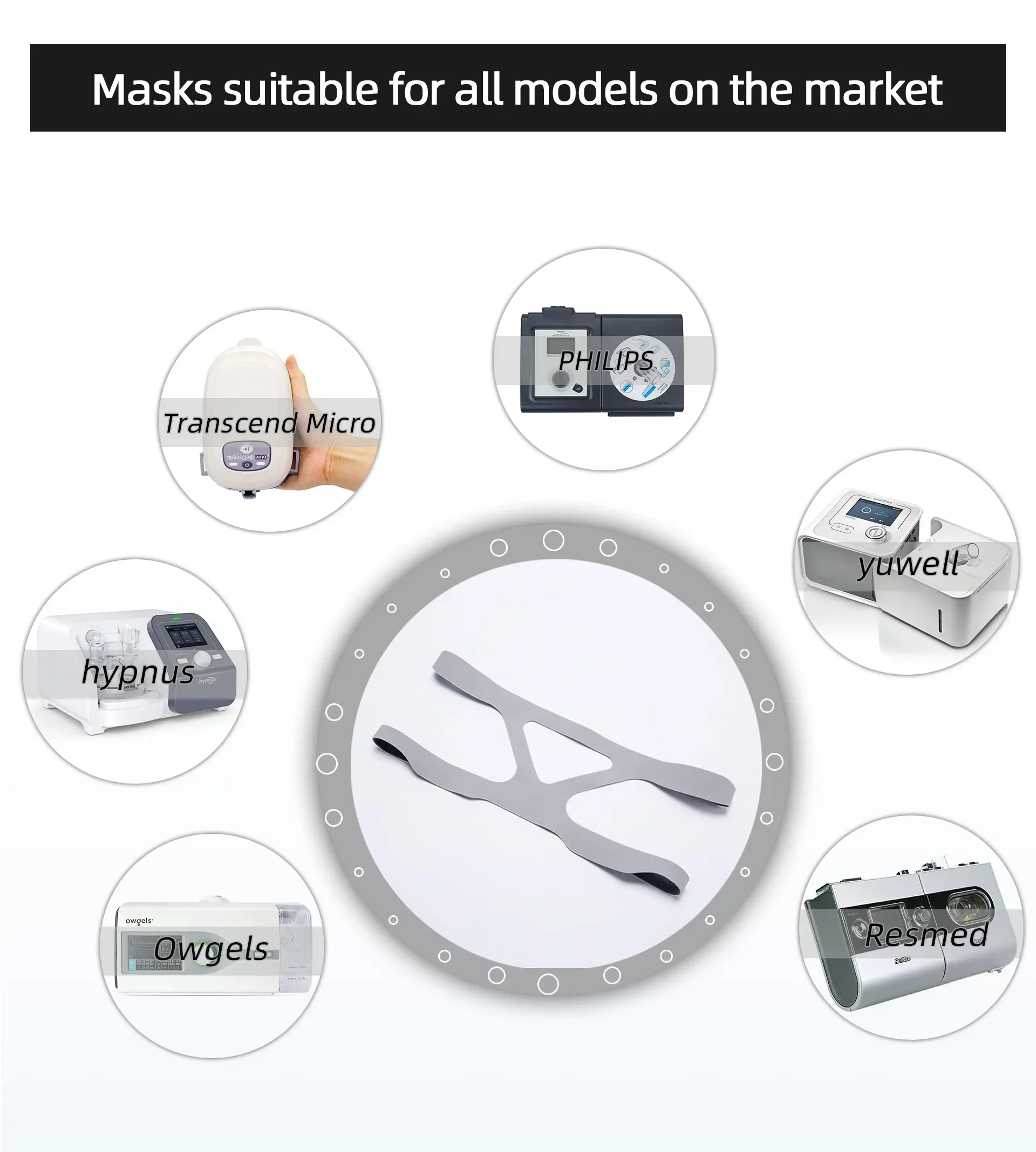 Correa de repuesto universal para casco para máscara CPAP, máscara CPAP suave de cara completa, correa para casco (sin máscara)