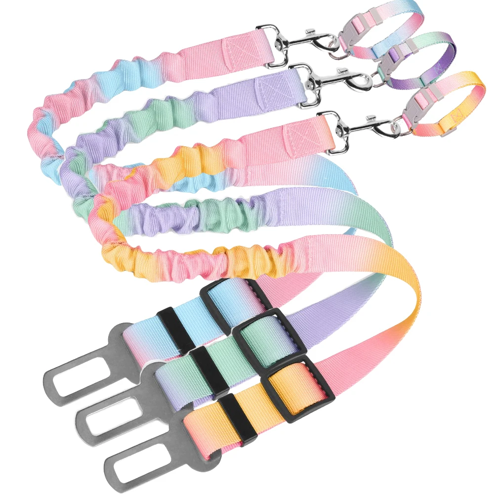 Correa retráctil para perro con Collar, 2 unidades/juego, cinturón de seguridad ajustable para coche, elástico duradero para masticar, seguro para viajes de mascotas
