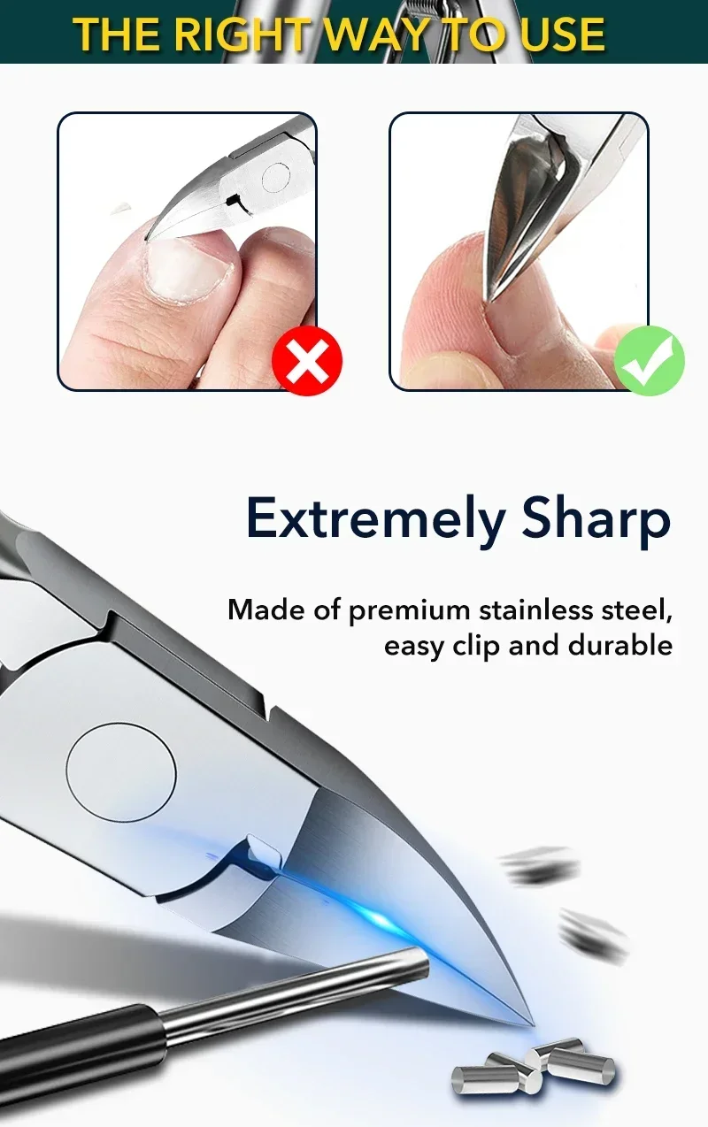 【Acero inoxidable de primera calidad】 Toda la parte metálica de nuestro cortador de uñas está hecha de acero quirúrgico 100% de grado dermatólogo para permitir una esterilización segura, prevenir la corrosión y minimizar el riesgo de infecciones.Además, el acero inoxidable de calidad profesional lo hace ideal para cortar cualquier tipo de uñas de los pies.