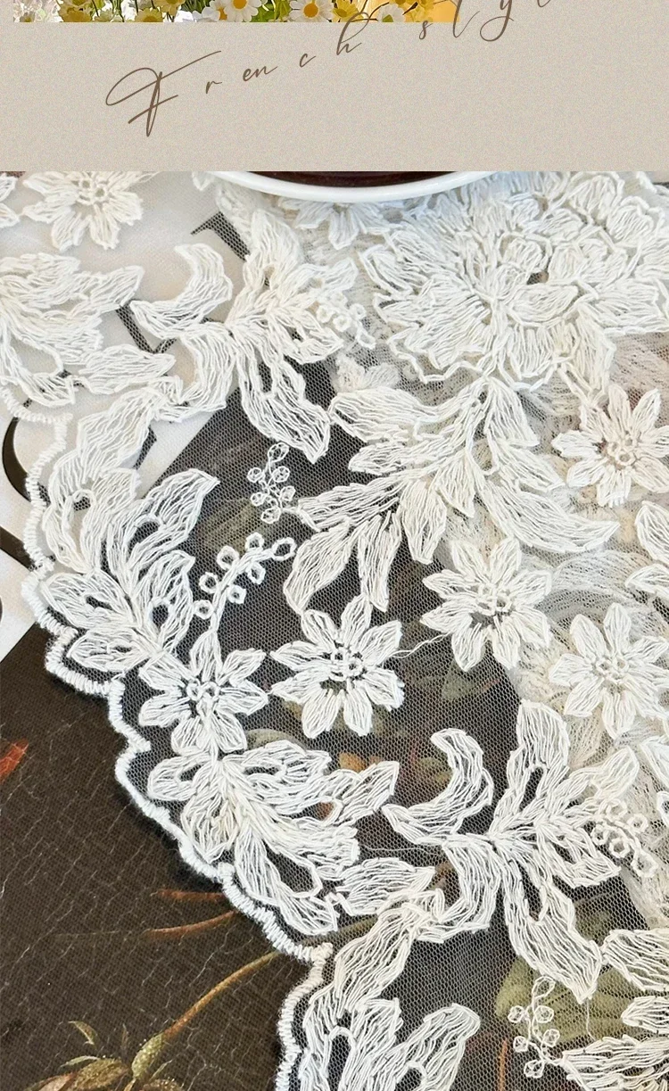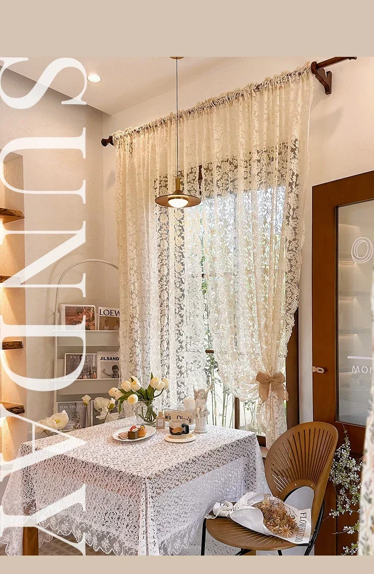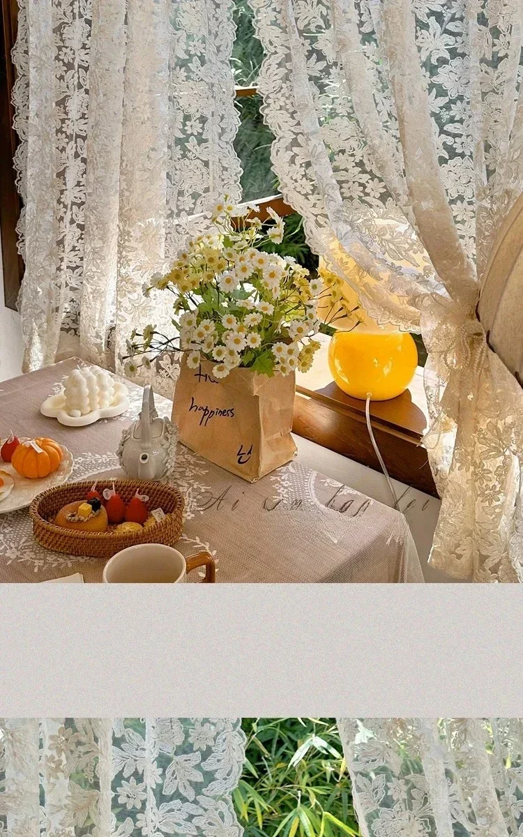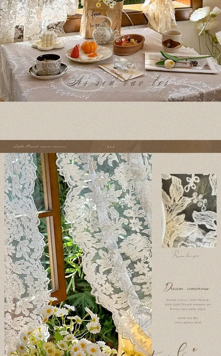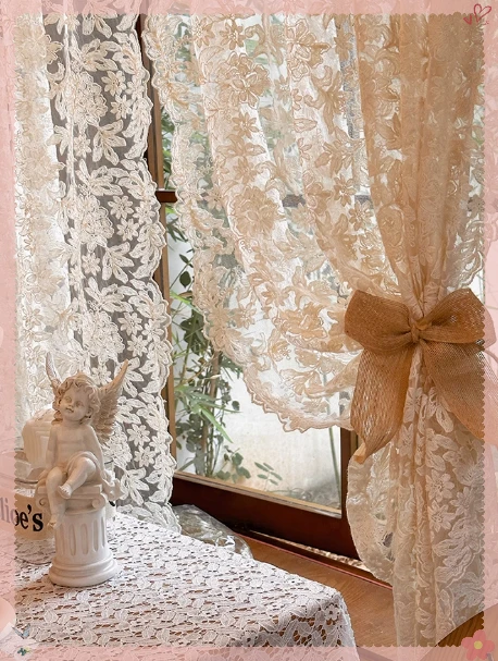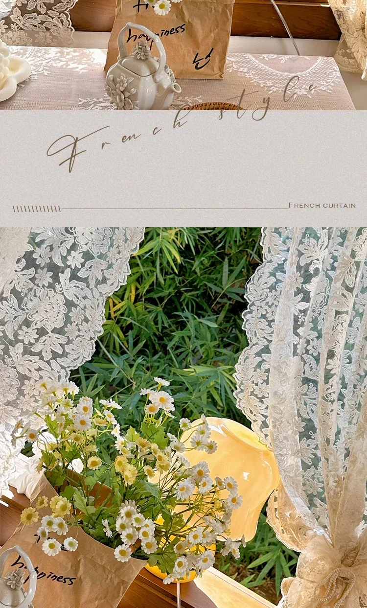 Cortina de gasa color crema con bordado de encaje estilo palaciego Retro francés, 1 unidad, cortina translúcida bordada Beige para sala de estar y dormitorio