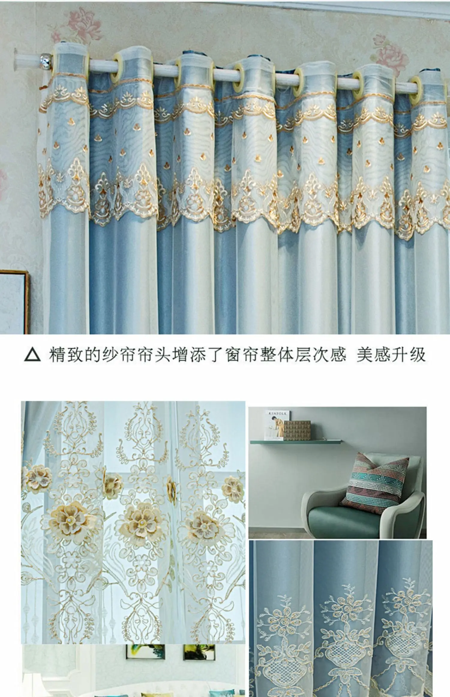 Comprar Cortinas de doble capa de lujo bordadas en 3D en relieve para sala de estar, dormitorio, comedor, elegantes cortinas para ventanas de café de alto sombreado