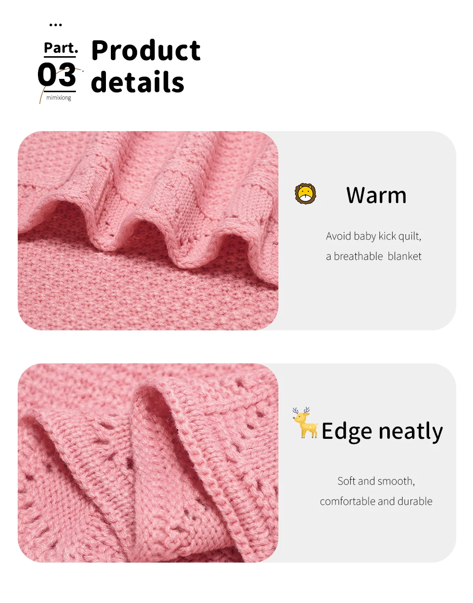 Couvertures tricotées pour bébé 100x80cm, légères et respirantes, pour nouveau-né, couette de réception pour nourrissons, garçons et filles, tapis de lancer pour tout-petits