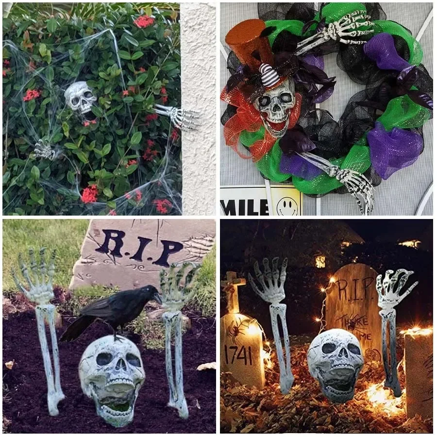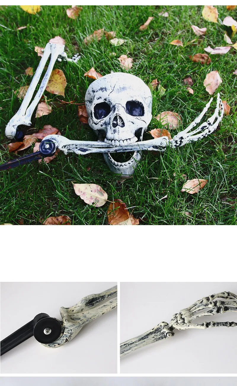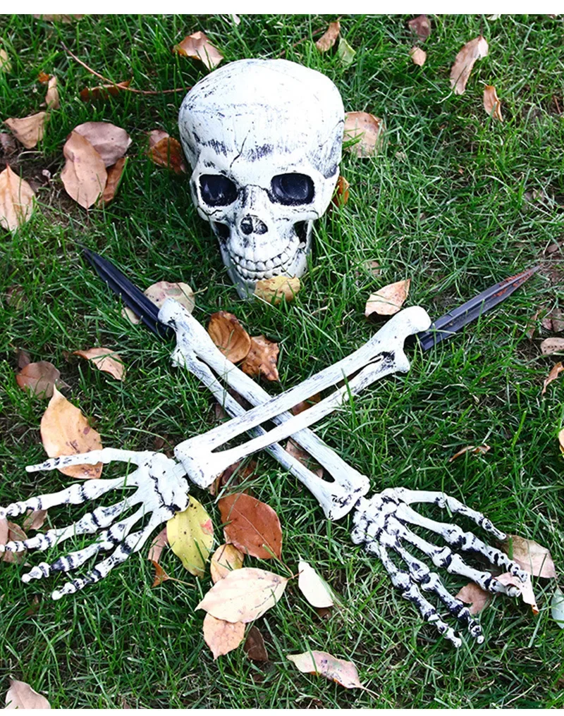 Nombre del producto: Juego de tres piezas de esqueleto con inserción de Halloween Tamaño del producto: mano única (mano larga): 47*10 cm; Cráneo individual: 13*20*15 cm; Tamaño de la mano corta: 26,5*13 cm Categoría SKU: mano única y larga; cráneo único; traje de mano corta (un par de manos cortas, una calavera) Características del producto: decoración de ambiente de Halloween, decoración de bares, decoración de fiestas, etc. Nota: el tamaño del producto para la medición manual, ¡hay un error de 1-2 cm!