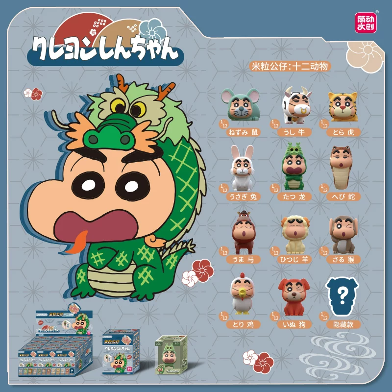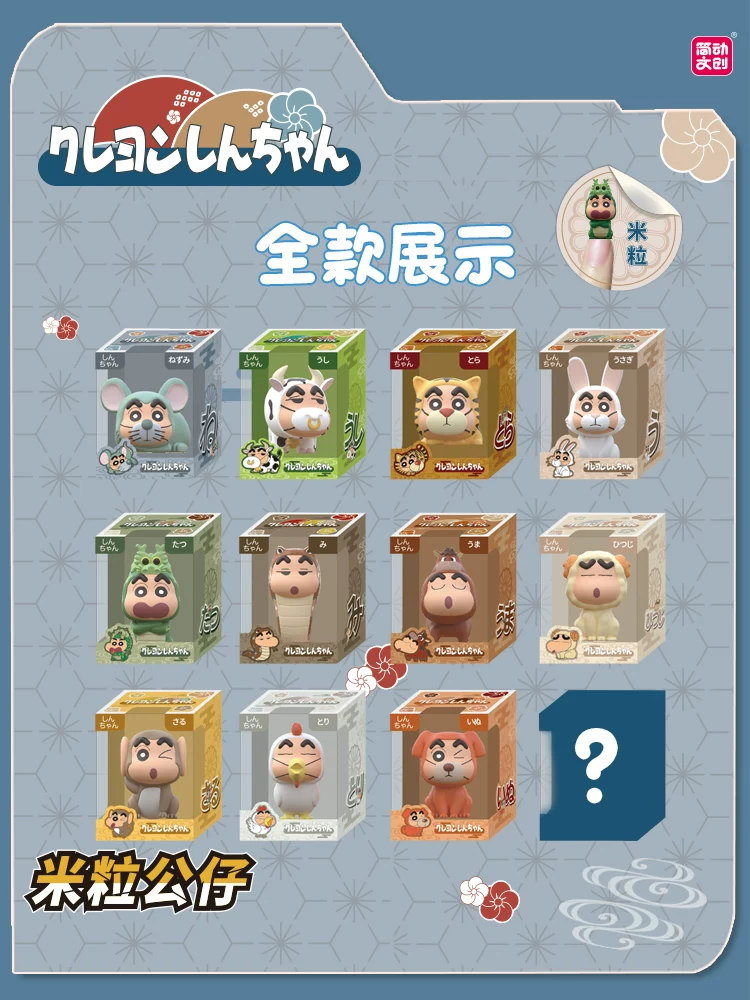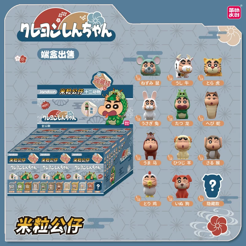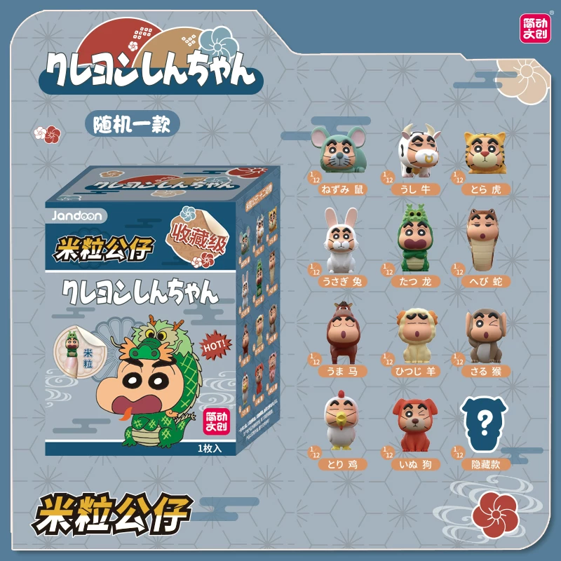 Crayon Shin Chan Zodíaco chino grano de arroz caja ciega hecha a mano Linda muñeca de grano adorno curativo periférico genuino regalo para niña