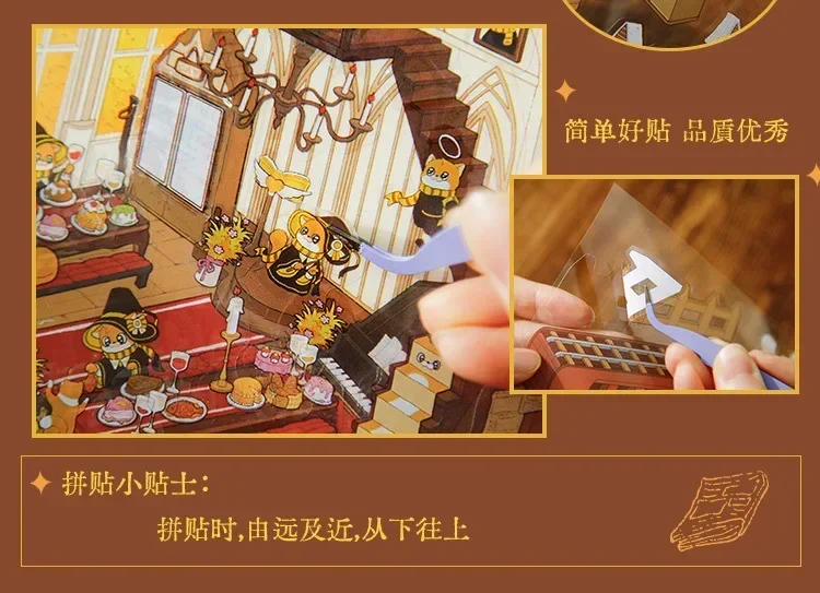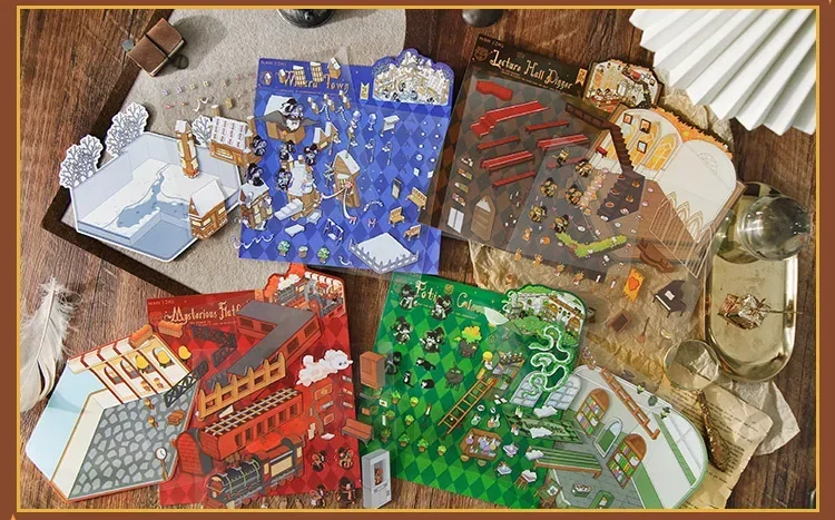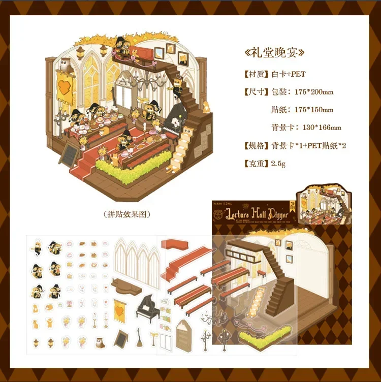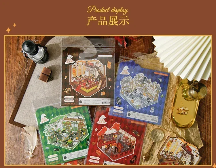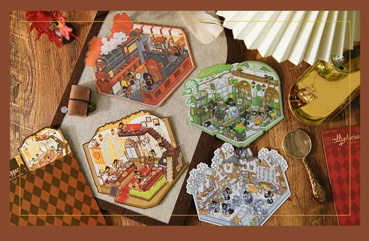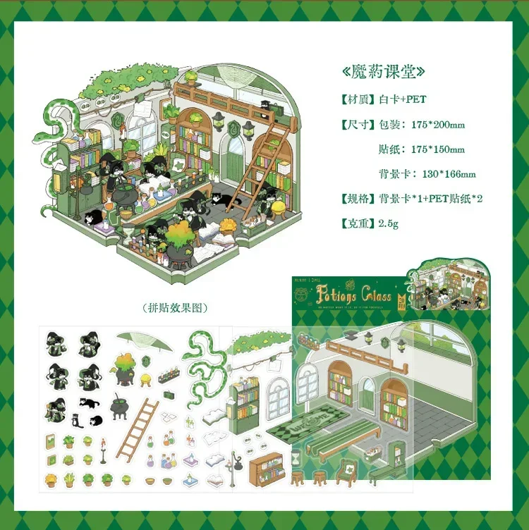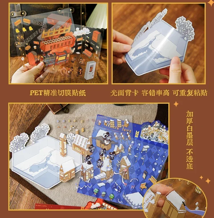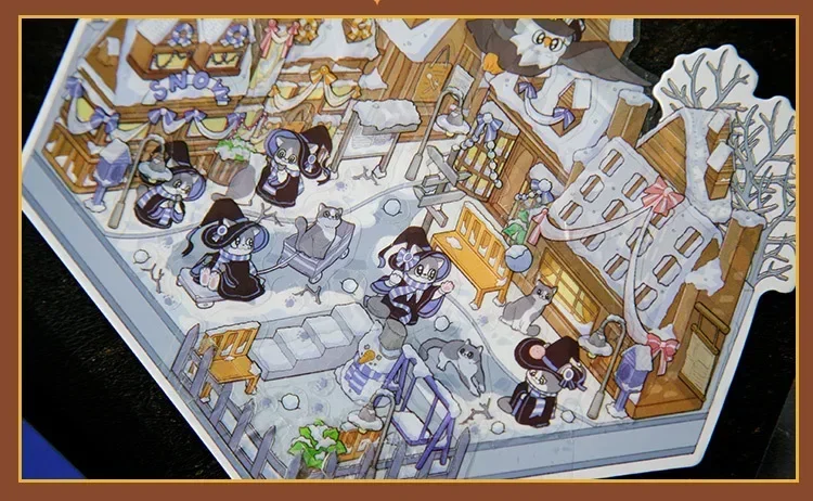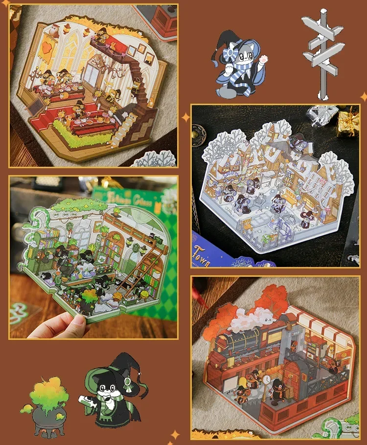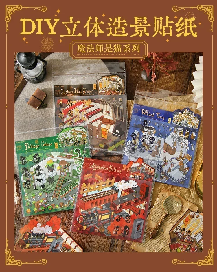 Creativo DIY lindo gatito de dibujos animados paisaje 3D gato de dibujos animados paisaje pegatina conjunto decoración para niños adultos alivio del estrés