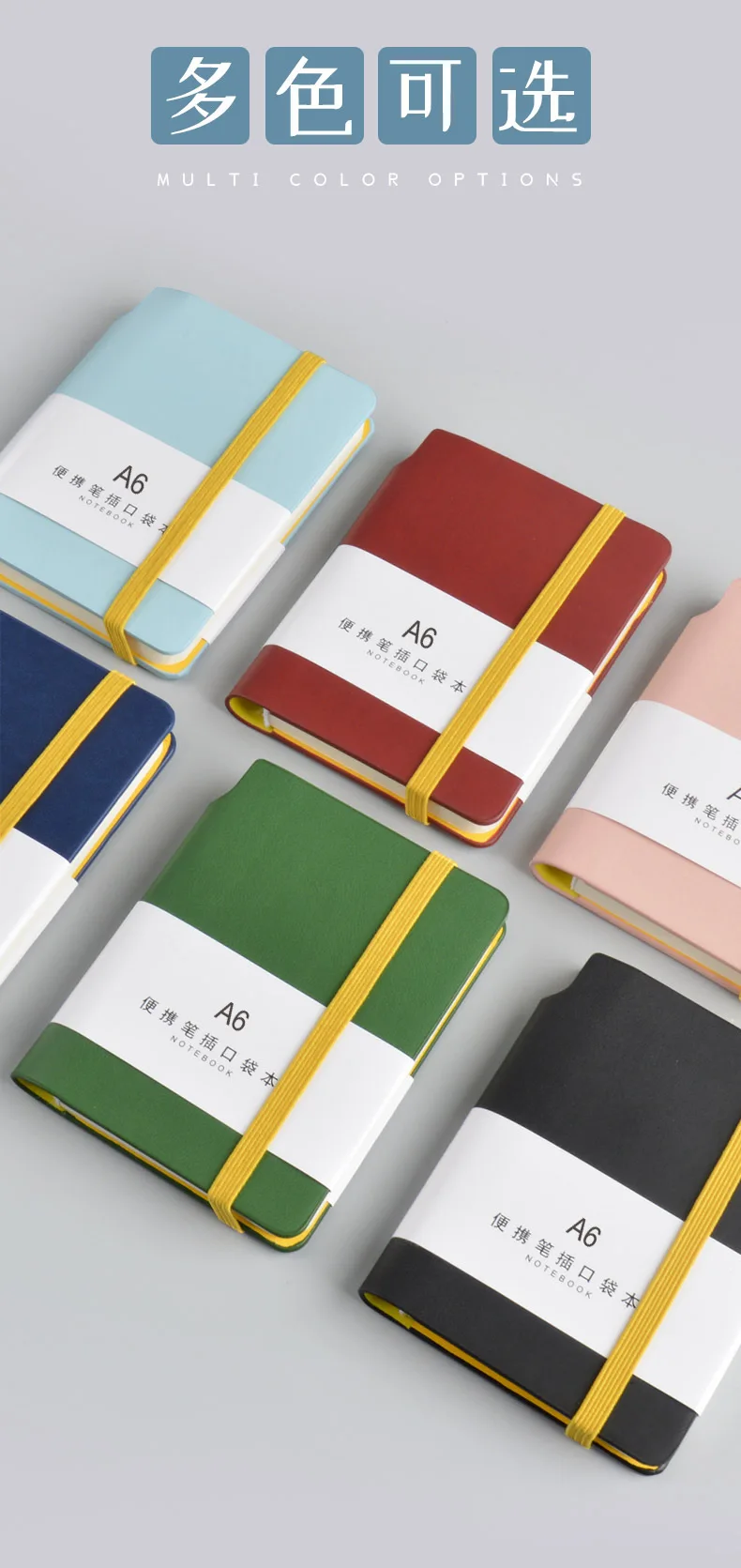Cuaderno A7 con hermosas bolsillos, Mini cuadernos portátiles, papelería de negocios, diario pequeño femenino grueso para la escuela semanal