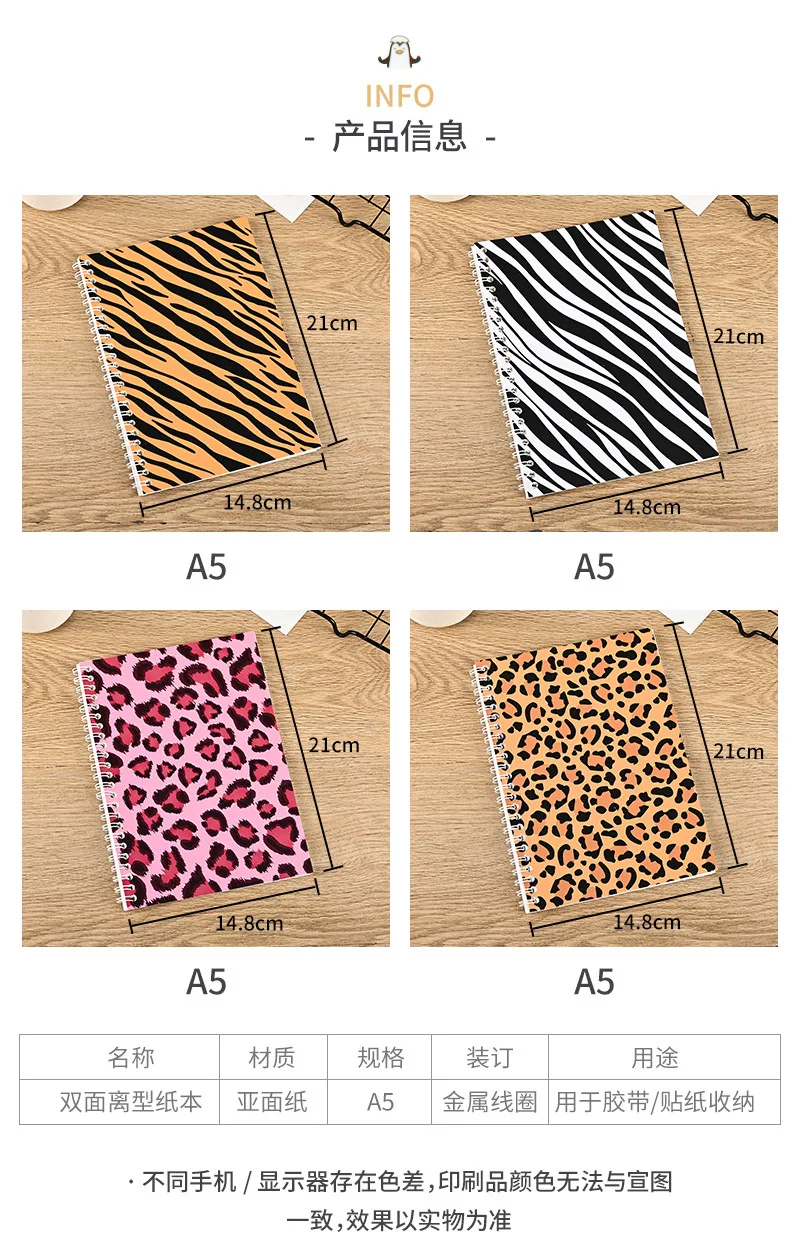 Cuaderno adhesivo de la serie con estampado de leopardo, tamaño A5, libros de papel de liberación de doble cara, cinta adhesiva, manual, libro de colección de Material