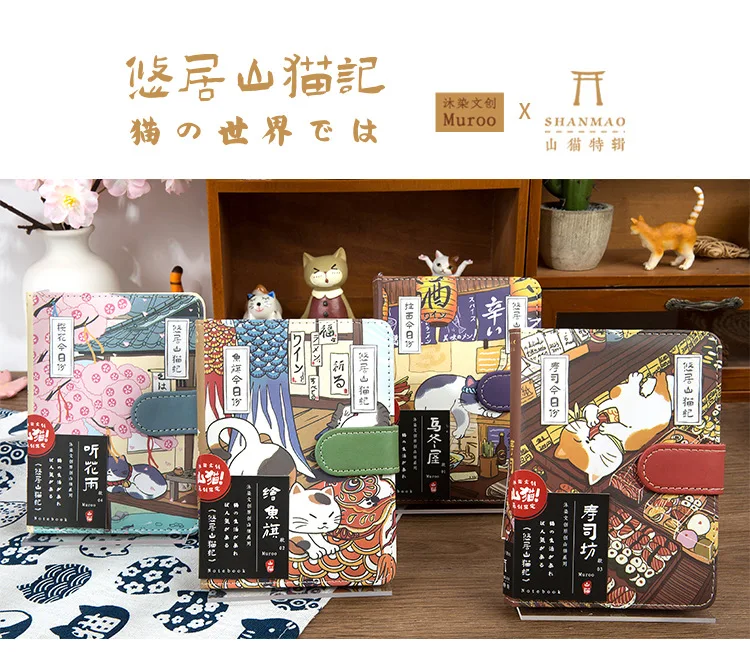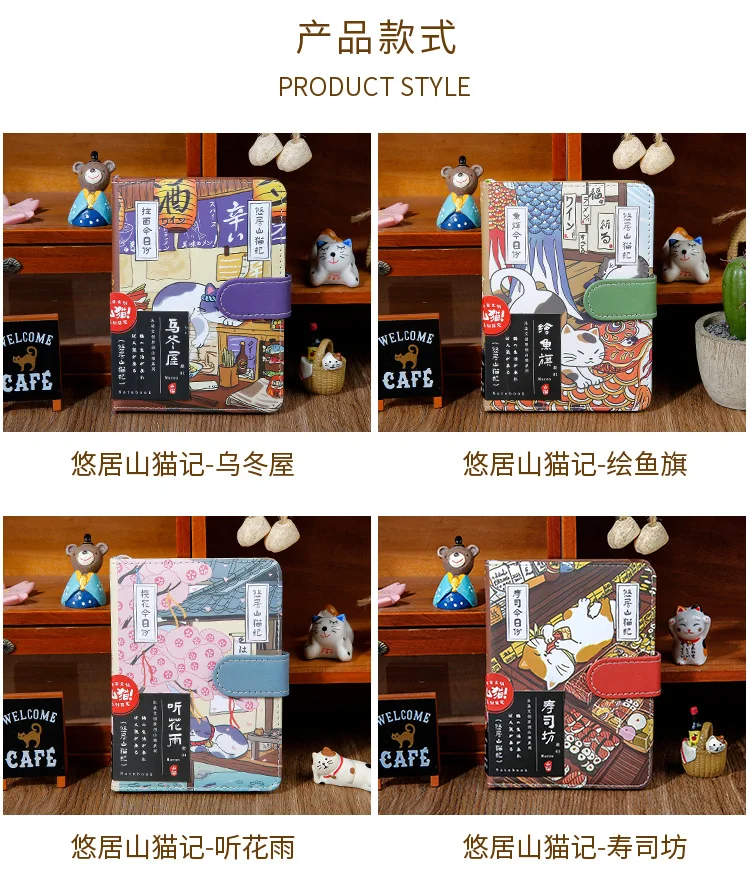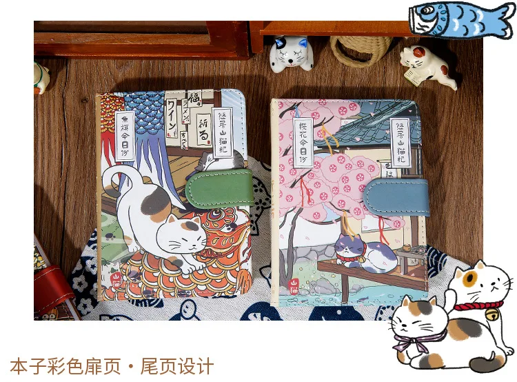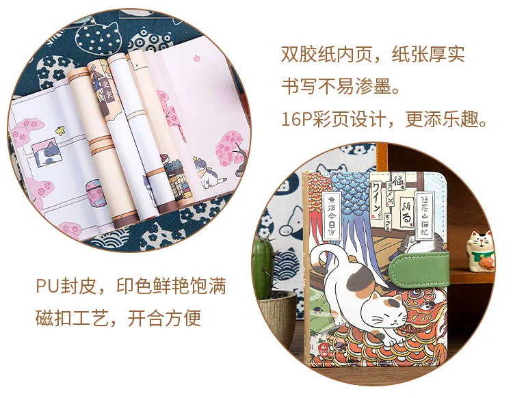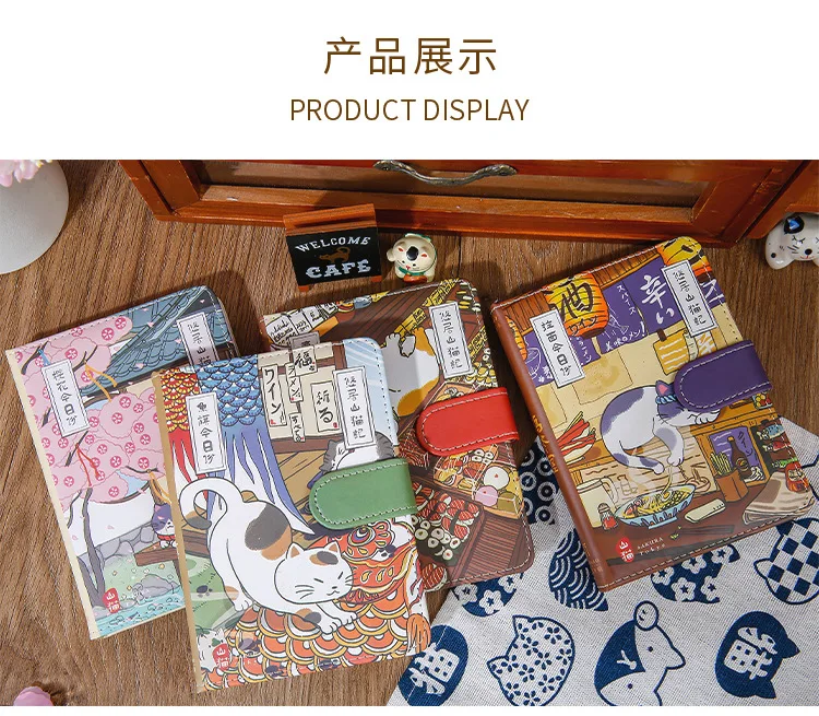 Cuaderno de gato de dibujos animados con broche magnético, cuaderno de bocetos japonés, cuaderno de viaje, diario para estudiantes para amantes de los gatos