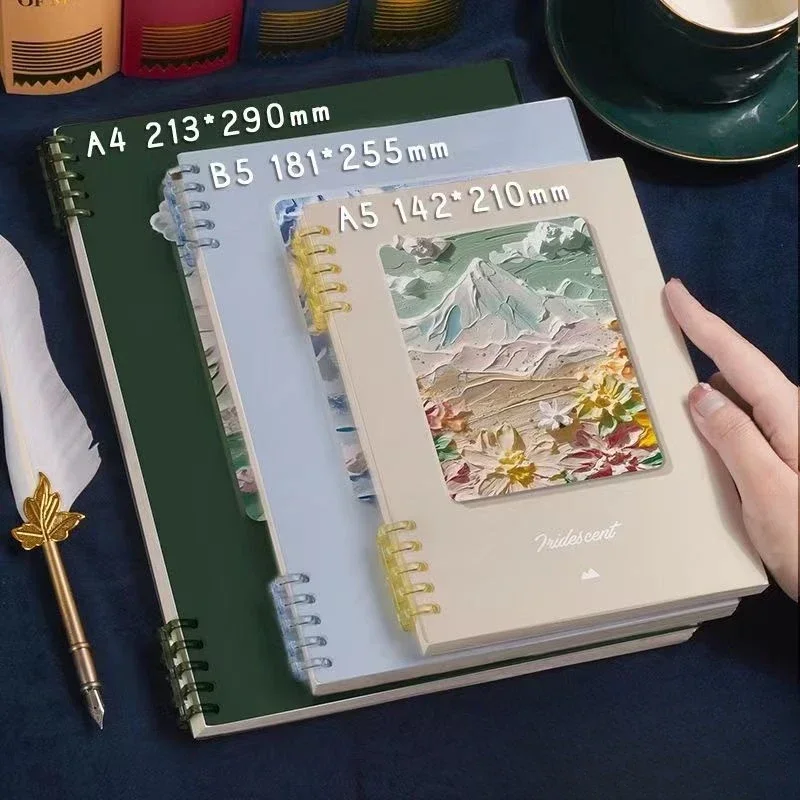 Cuadernos de hojas sueltas A5, cubierta de pintura al óleo, cuaderno de línea Horizontal desmontable, libretas para estudiantes, papelería, suministros de oficina, 80 hojas