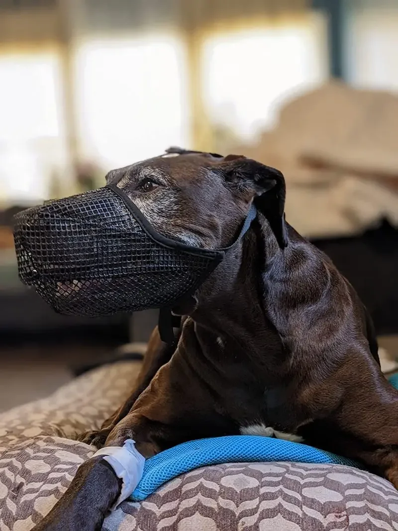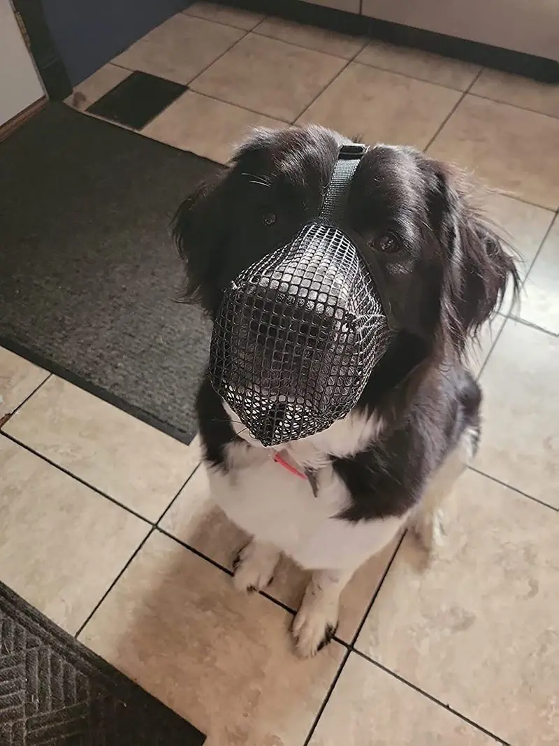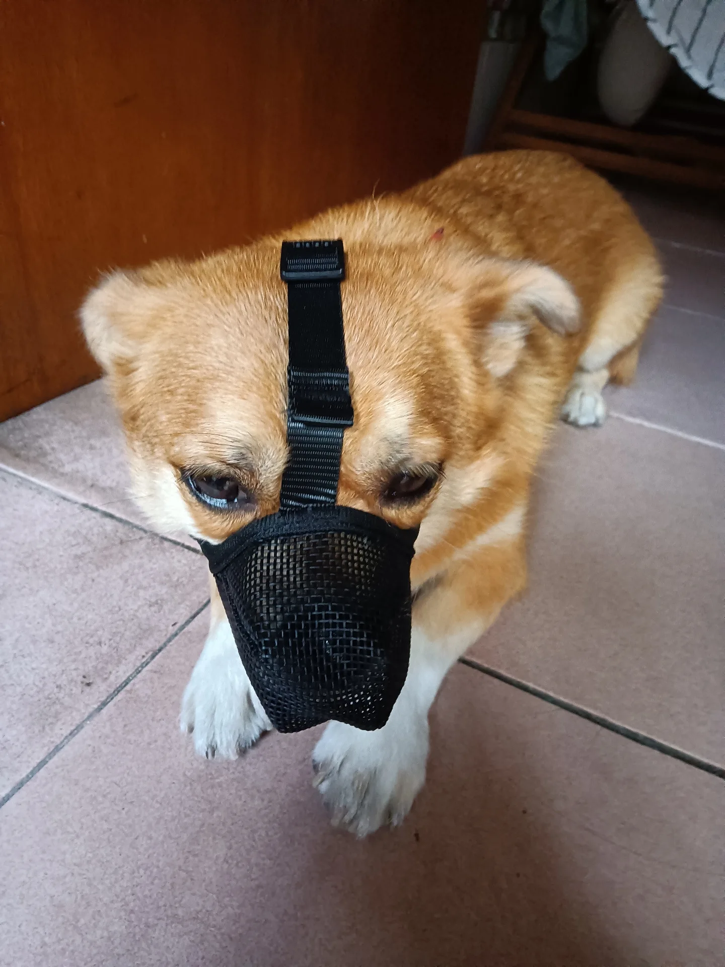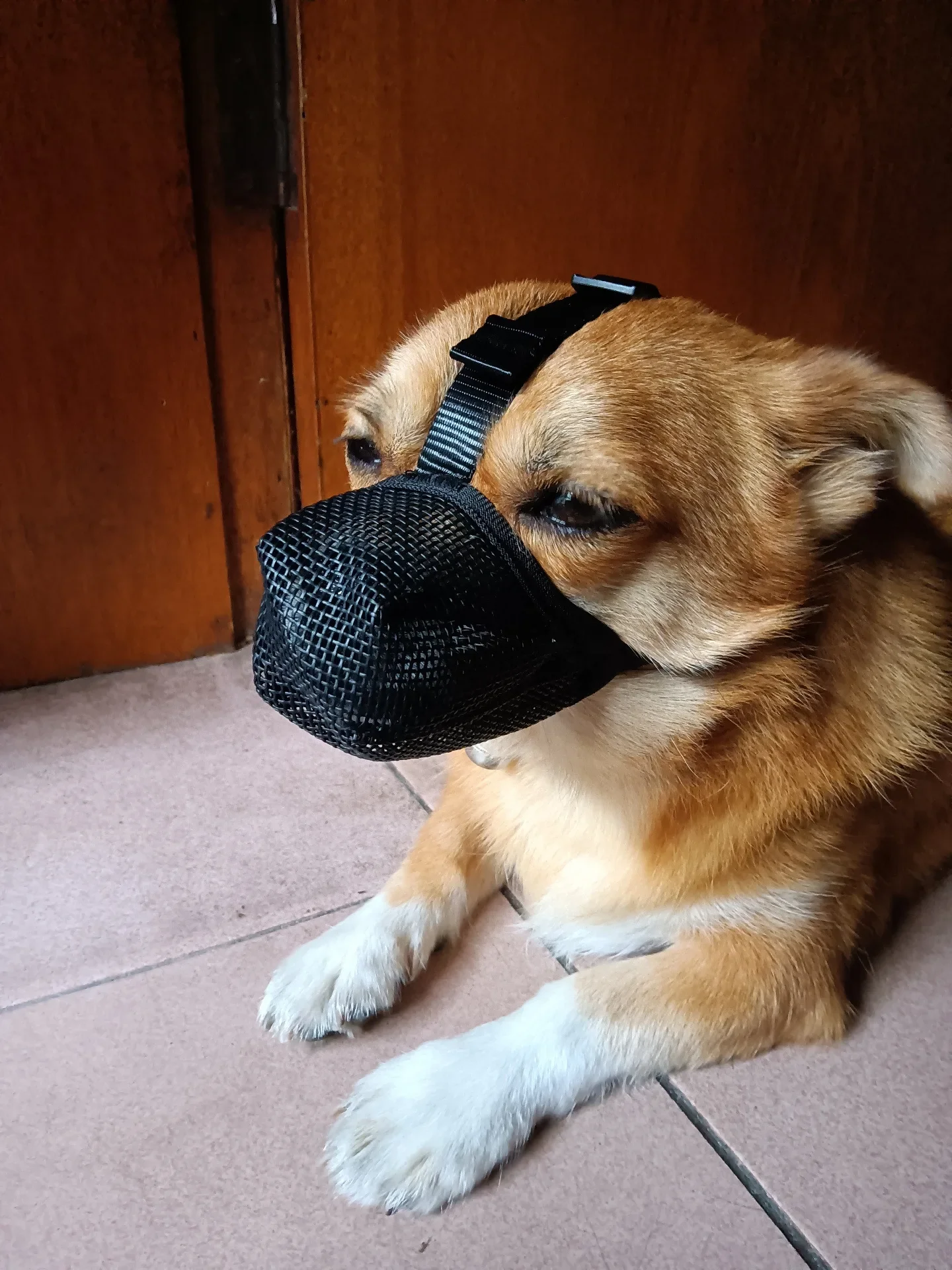 Comprar Cubierta para la boca del perro ajustable y transpirable, color negro, máscara para perros al aire libre para prevenir el dolor de morder y comer, máscara para mascotas de malla de nailon