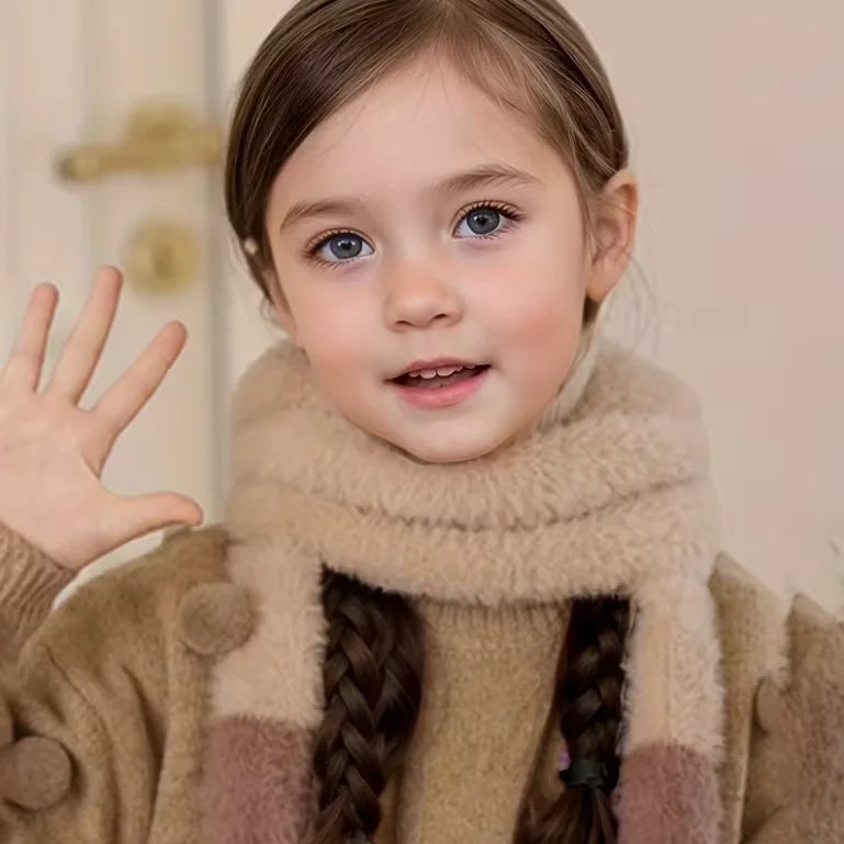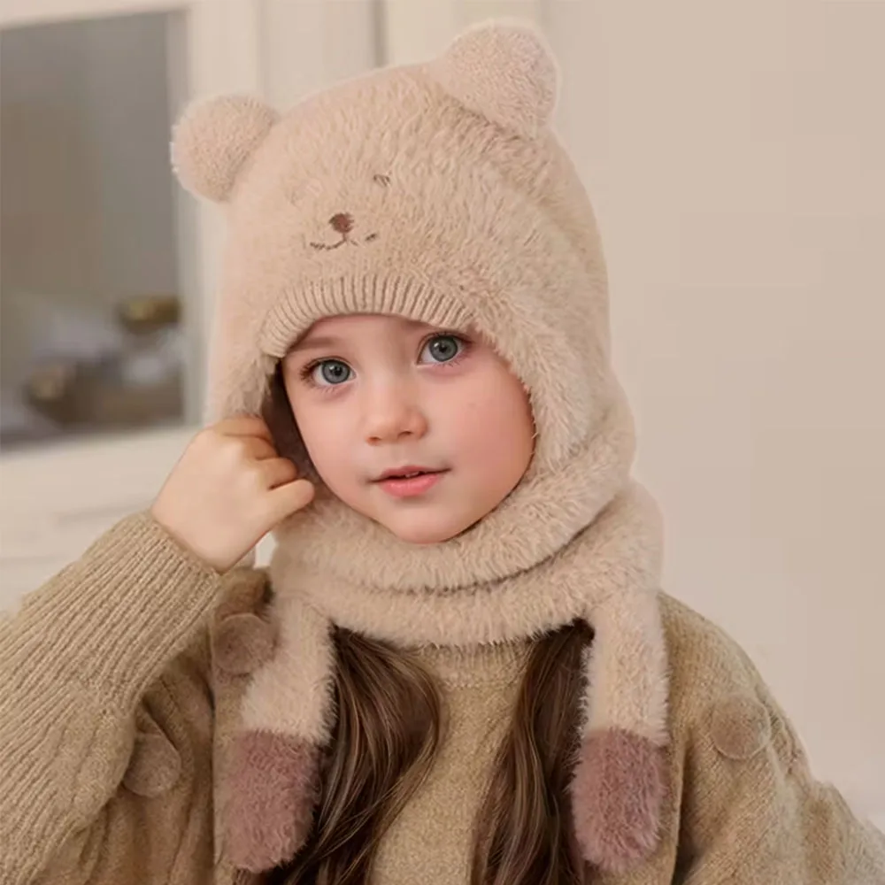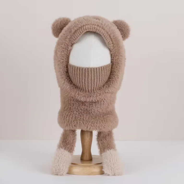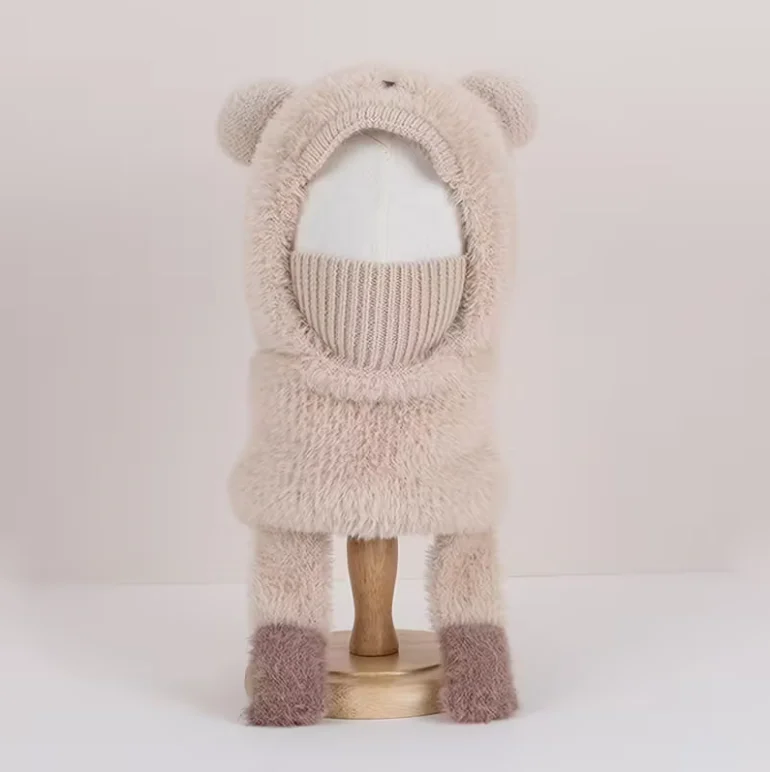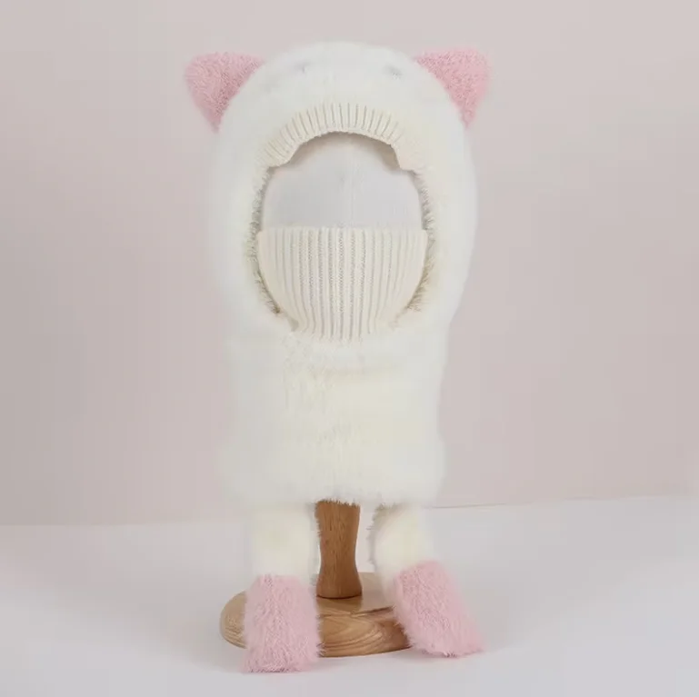 Cubierta para la cara con estampado de orejas y patas de animales de peluche de 2 a 6 años, ajuste elástico y cómodo, blanco para clima frío, sombrero de invierno, máscara y bufanda