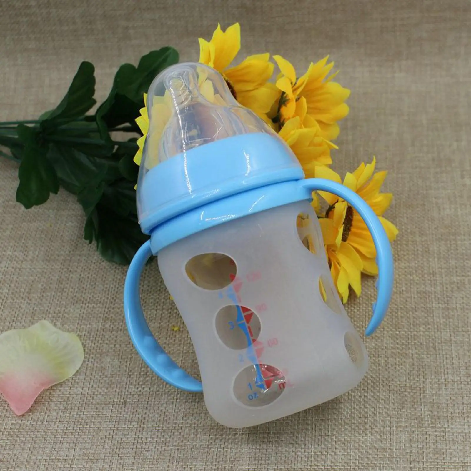2.Helpful Design: Silicone sleeve for glass bottle provides a marked scale for intuitive milk measurement, allowing caregivers to avoid feeding errors and maintain consistency during early morning or nighttime use