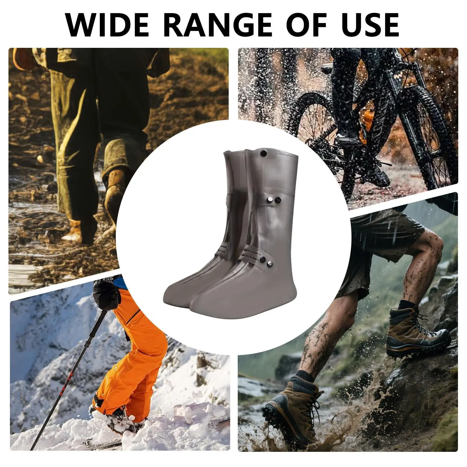 2. Equipo óptimo para climas húmedos: las cubrezapatos para la lluvia brindan una cobertura extendida para proteger calcetines y pantorrillas con un perfil alto, evitando eficazmente salpicaduras y rasguños mientras mantienen la limpieza del calzado en condiciones lluviosas o embarradas.
