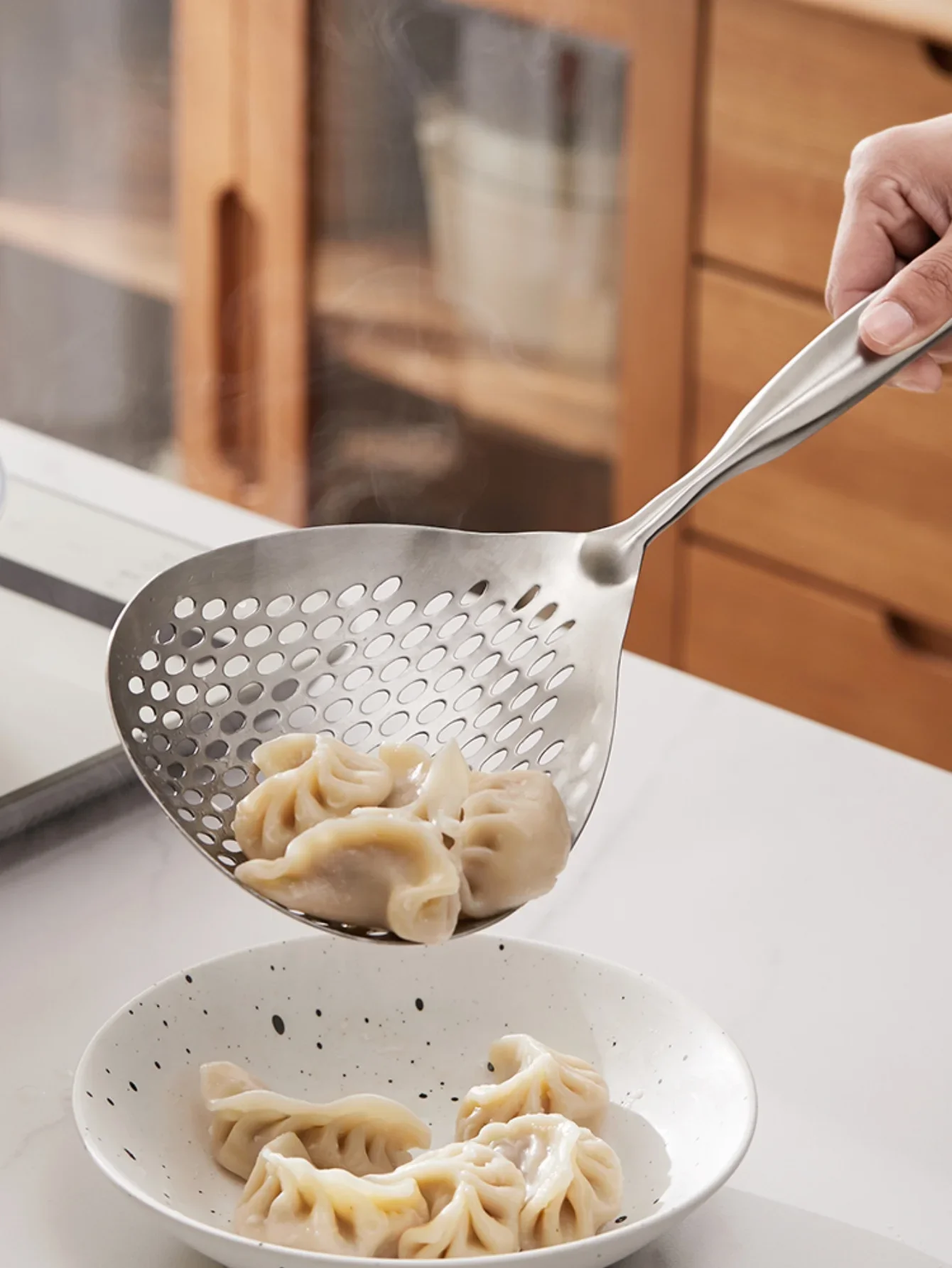 Esta cuchara tiene un mango más grueso en las fotos que el que recibí.