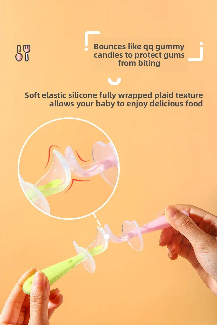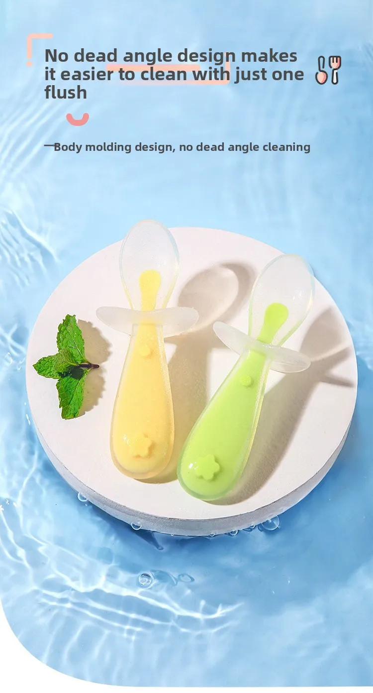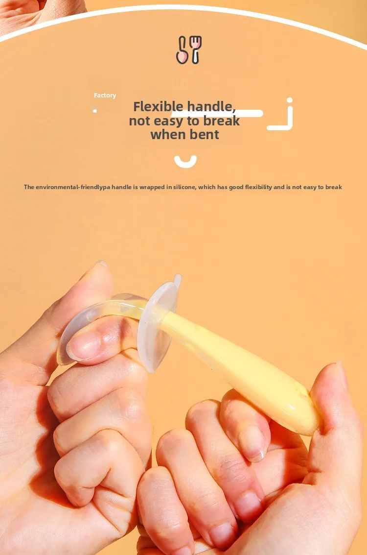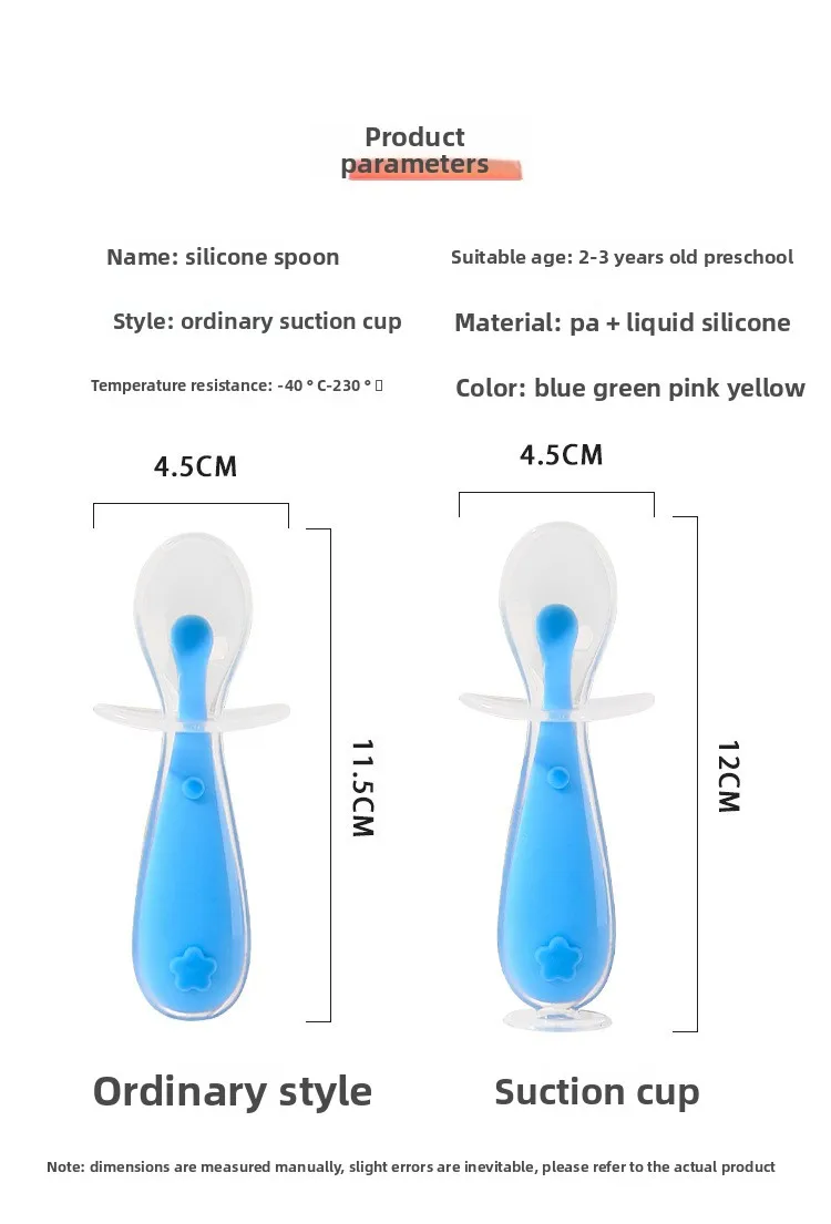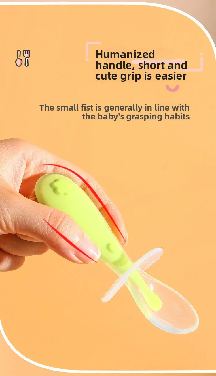 Cuchara de silicona para bebé, alimentación de pasta de arroz para bebé, cuchara de sopa de cabeza suave, cuchara de entrenamiento, cuchara corta de silicona con escudo para niños