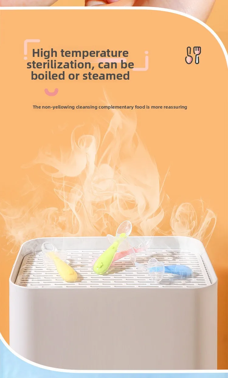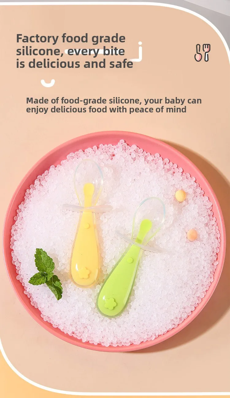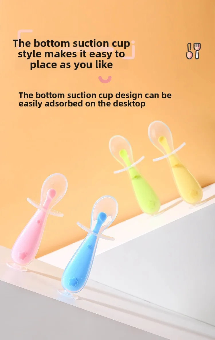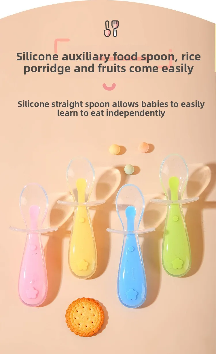 Cuchara de silicona para bebé, alimentación de pasta de arroz para bebé, cuchara de sopa de cabeza suave, cuchara de entrenamiento, cuchara corta de silicona con escudo para niños