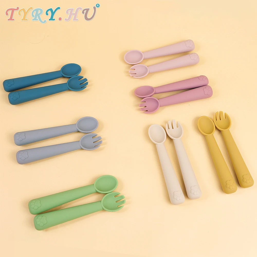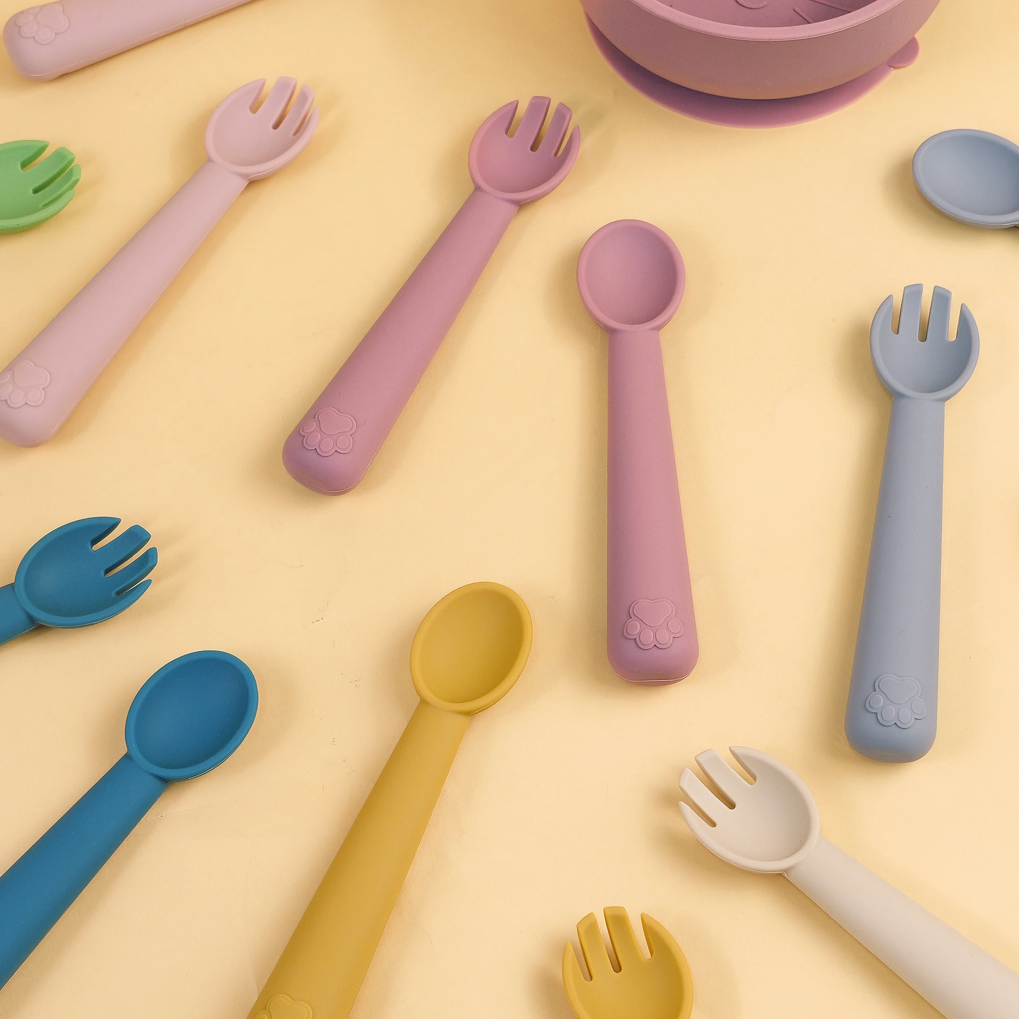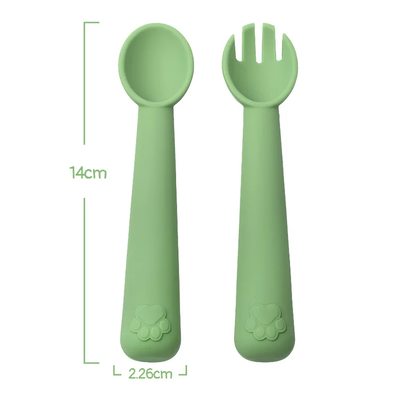 Comprar Cuchara tenedor de silicona de calidad alimentaria, cubiertos con forma de gato, cuchara de comida complementaria para entrenamiento de bebé, tenedor de cuchara de alimentación de bebé, 2 uds.