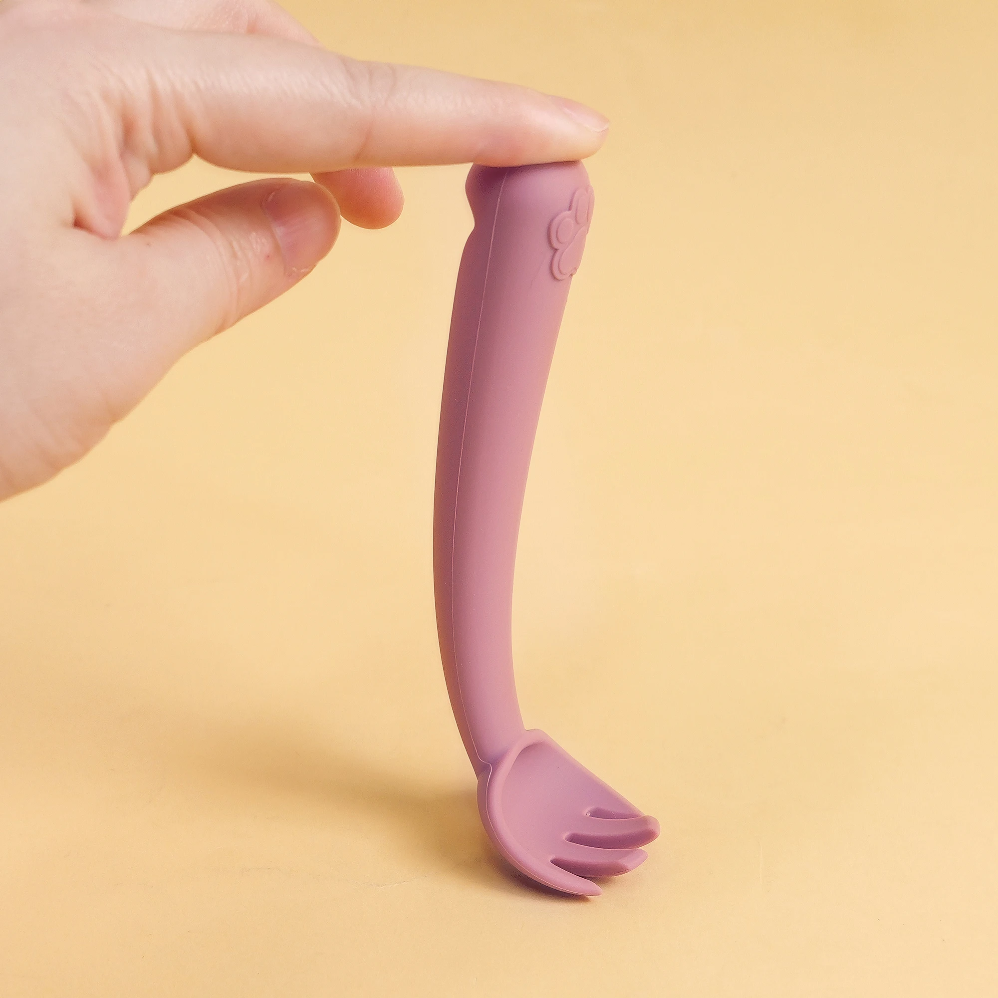 Comprar Cuchara tenedor de silicona de calidad alimentaria, cubiertos con forma de gato, cuchara de comida complementaria para entrenamiento de bebé, tenedor de cuchara de alimentación de bebé, 2 uds.