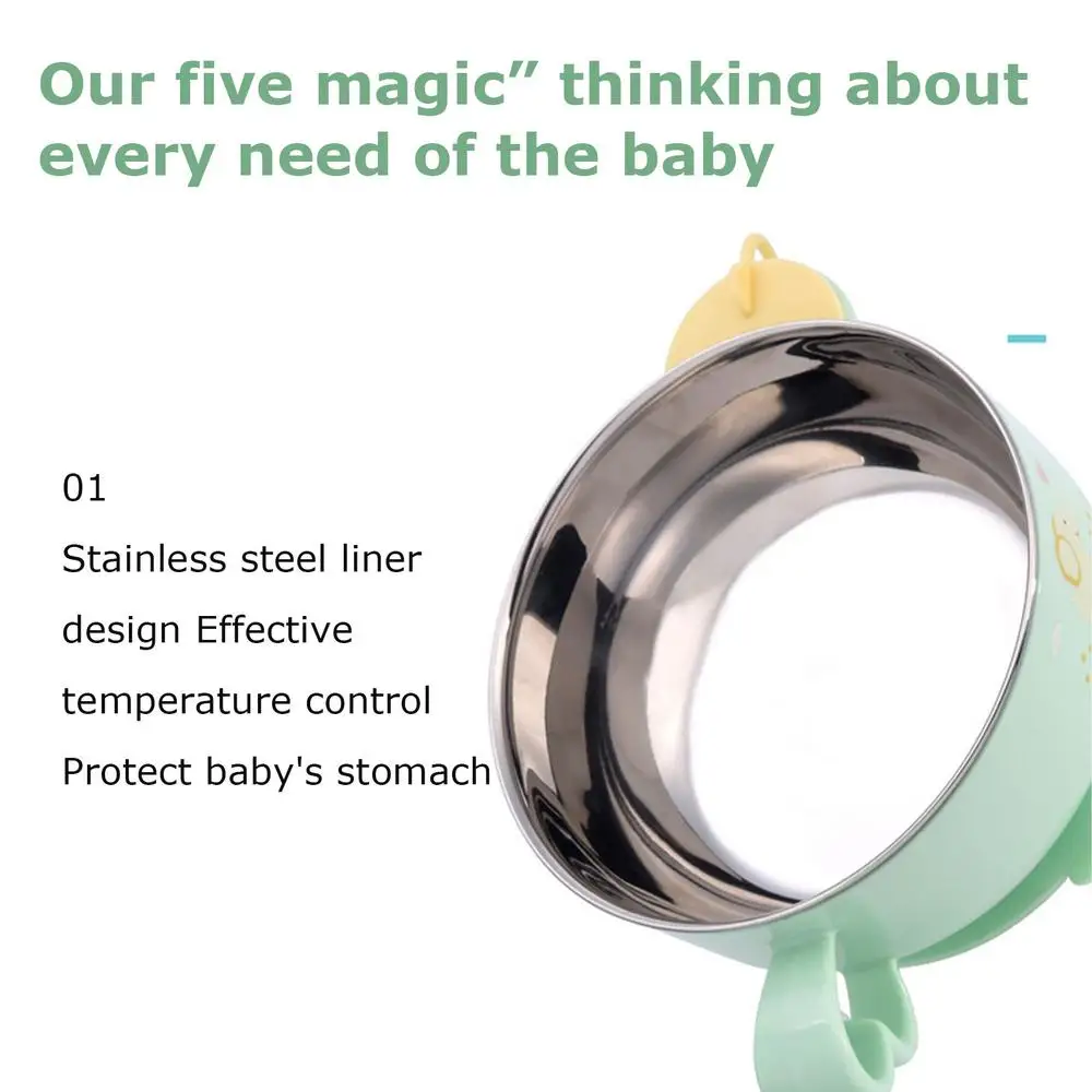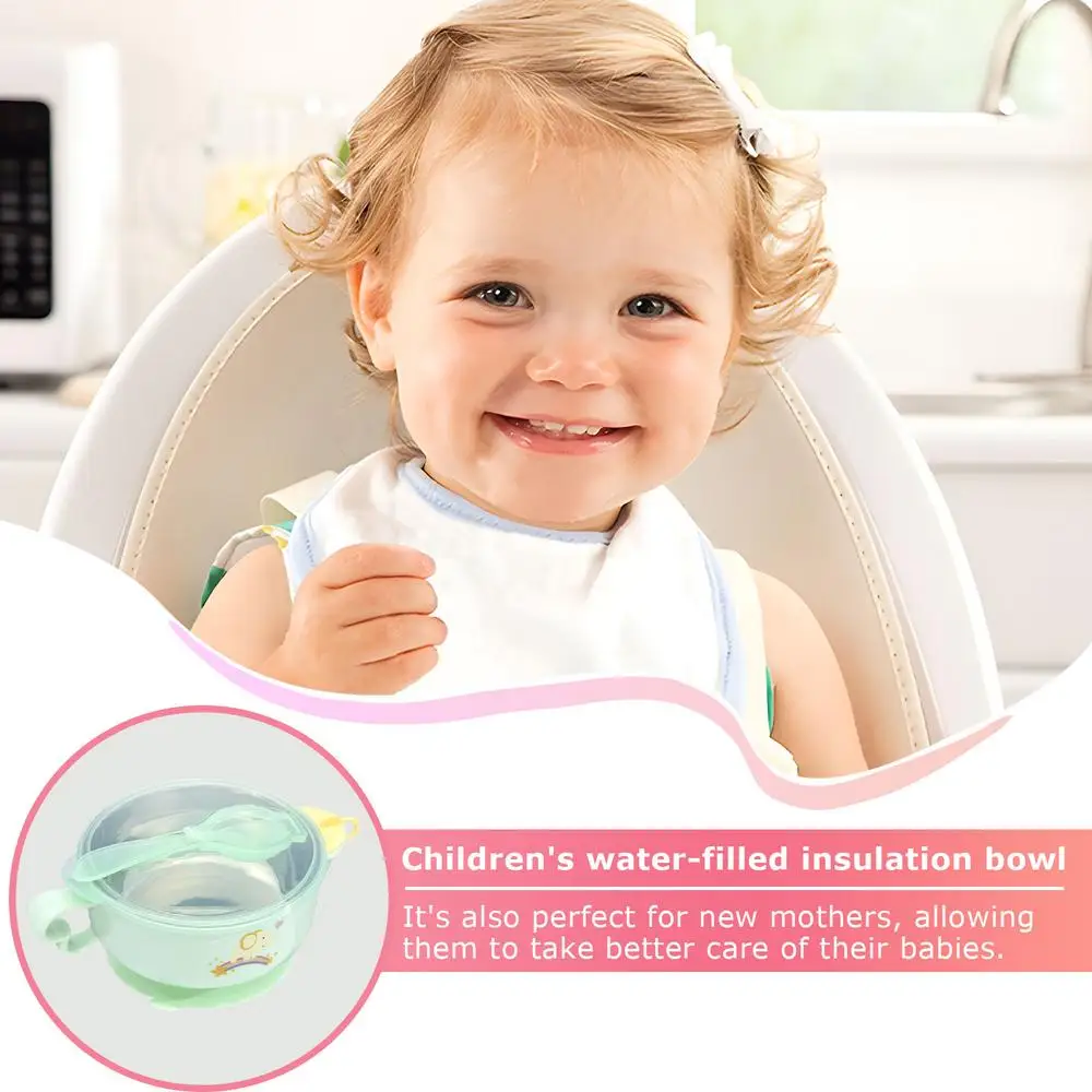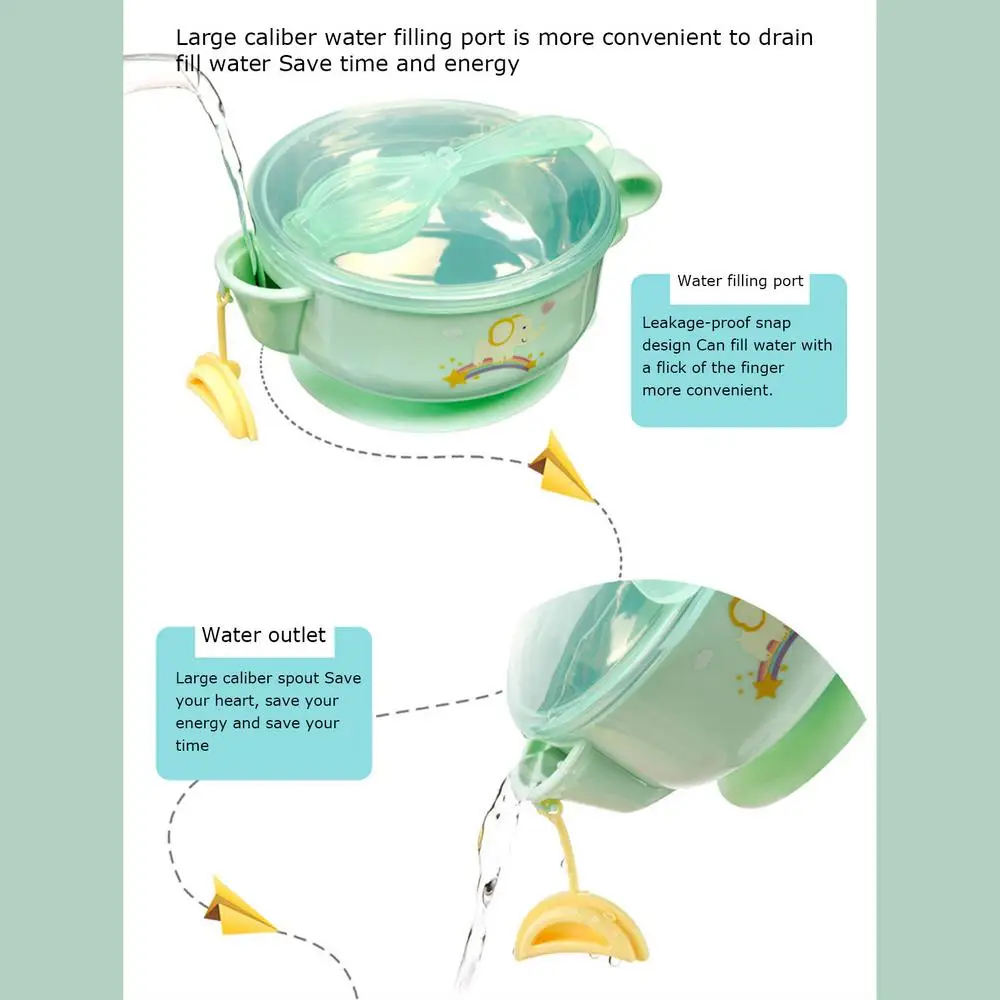 1. Cómodo de usar: disfrute de una comida deliciosa y caliente en todo momento con nuestro tazón aislado para niños, equipado con un diseño único lleno de agua que se puede llenar con agua fría o caliente para mantener la comida perfectamente caliente y sabrosa.