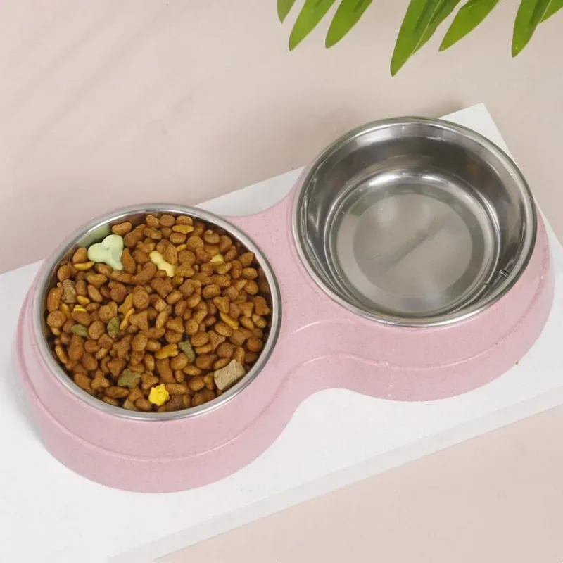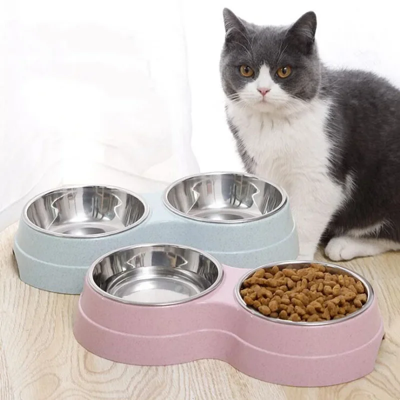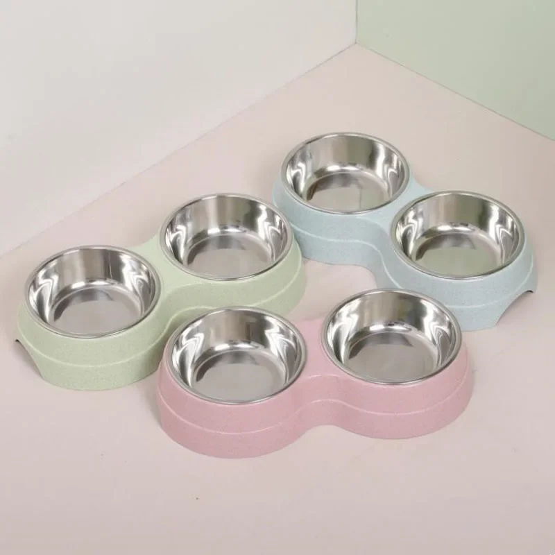 Cuencos dobles para mascotas, alimentador de agua para comida para perros, plato para beber de acero inoxidable, suministros de alimentación para gatos y cachorros, accesorios para perros pequeños