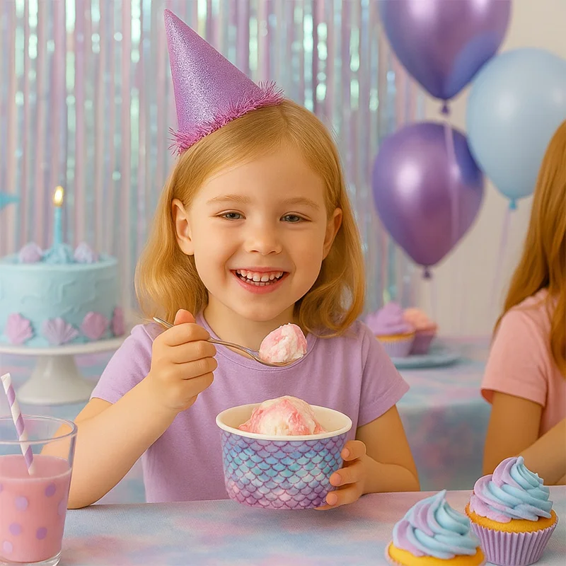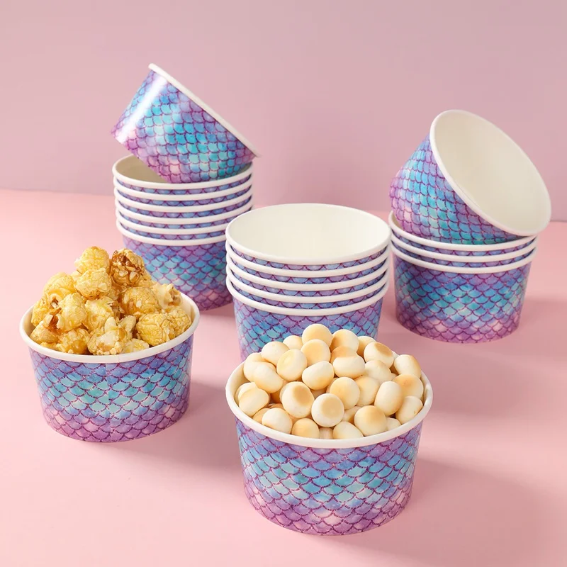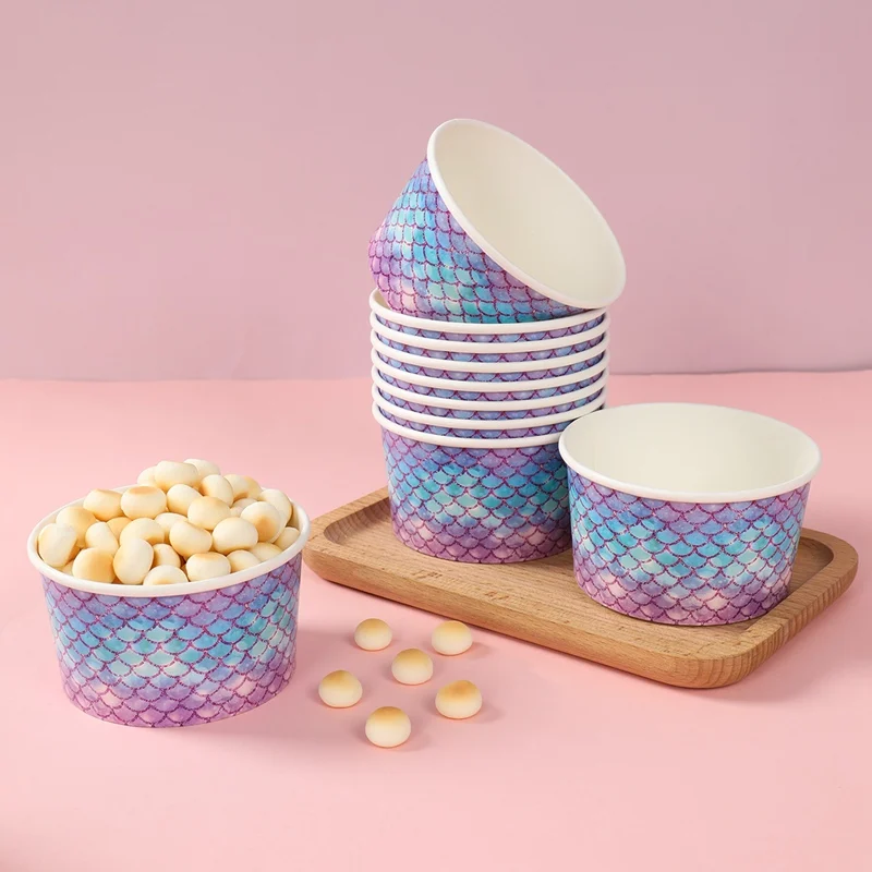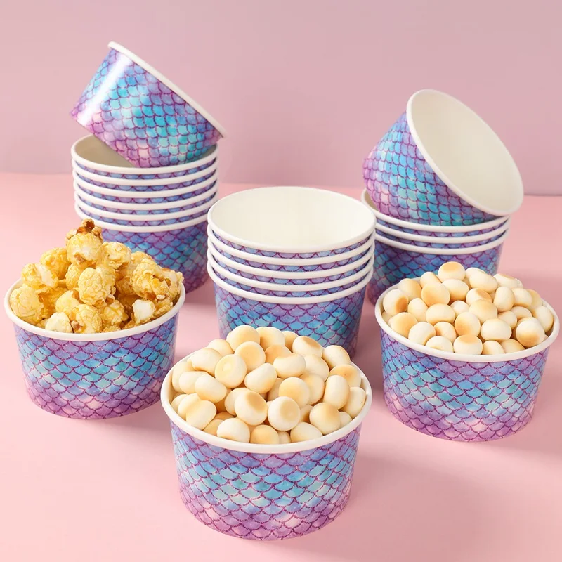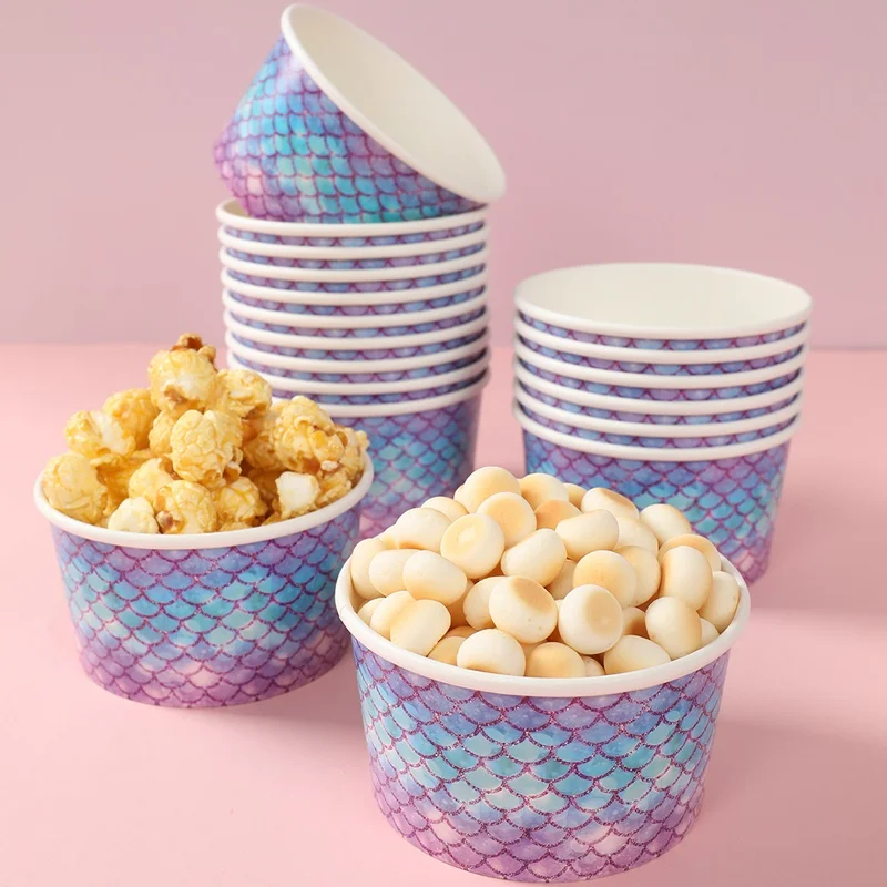 Cuencos de papel desechables de sirena, cuencos morados bajo el mar, tema de sirena feliz verano para niñas, decoración de fiesta de 1er cumpleaños, 10 Uds.