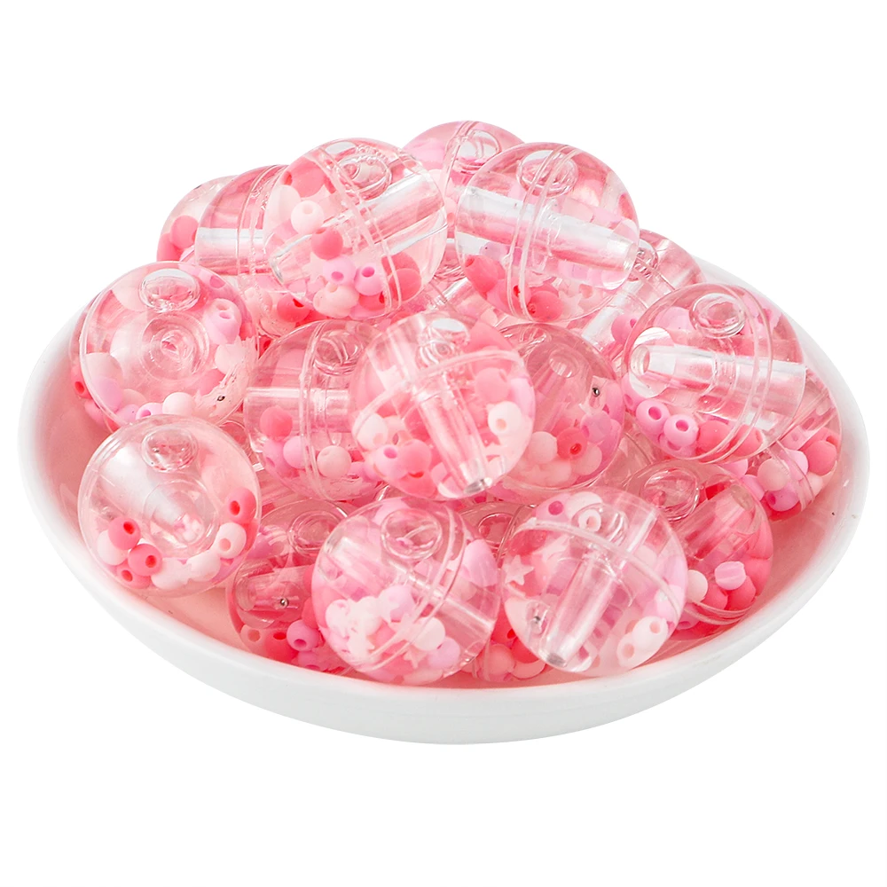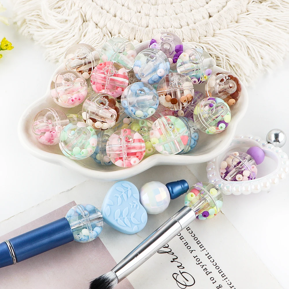 10pcsAcrylic Transparent Oil Liquid Quicksand Beads Water Core Round Beads DIY Jewelry Necklace Bracelet Pen Keychain Accessorie