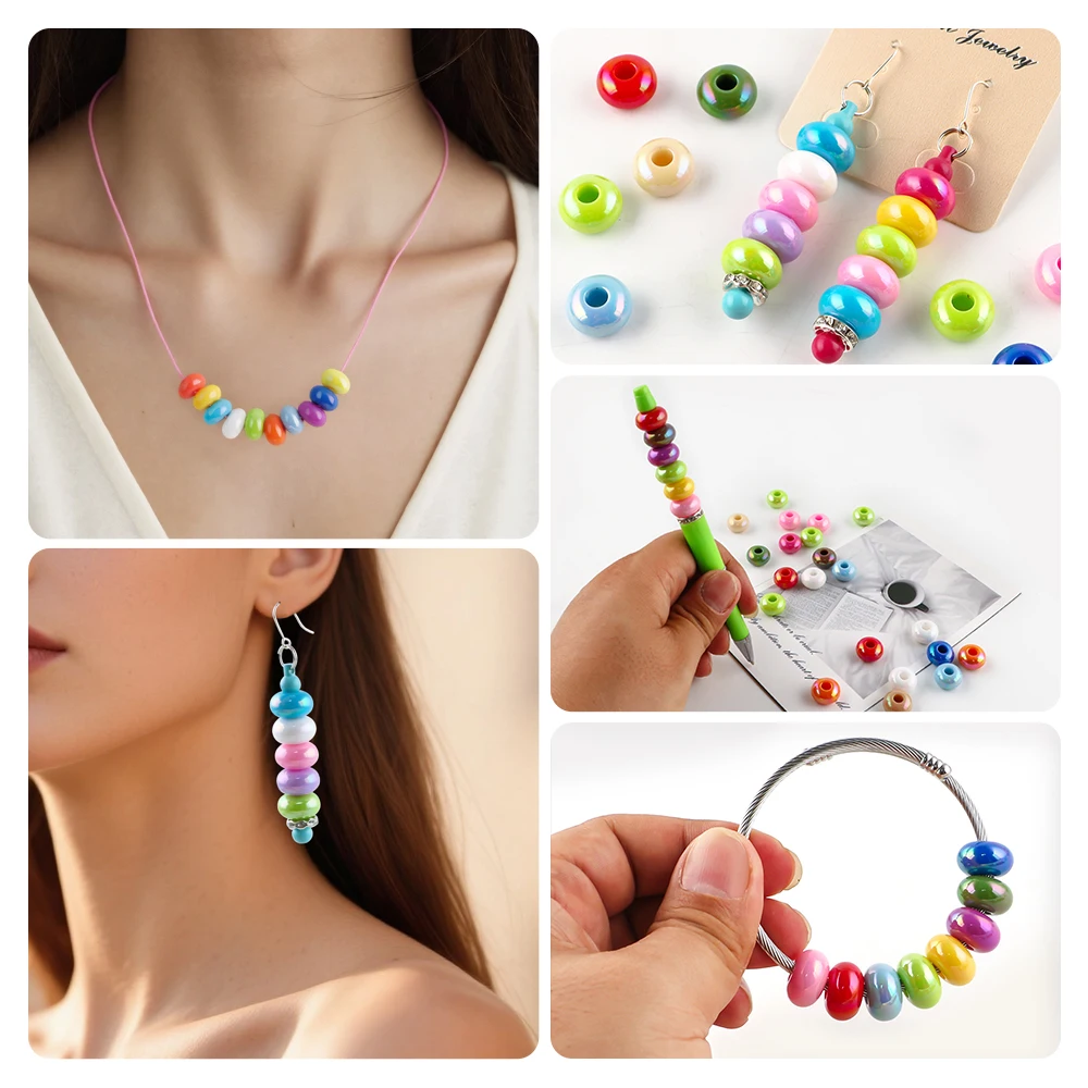 Cuentas de rueda con agujero grande de colores sólidos de 14mm, espaciador acrílico, cuentas redondas sueltas, pulsera DIY, cuentas de cadena para teléfono, accesorios hechos a mano