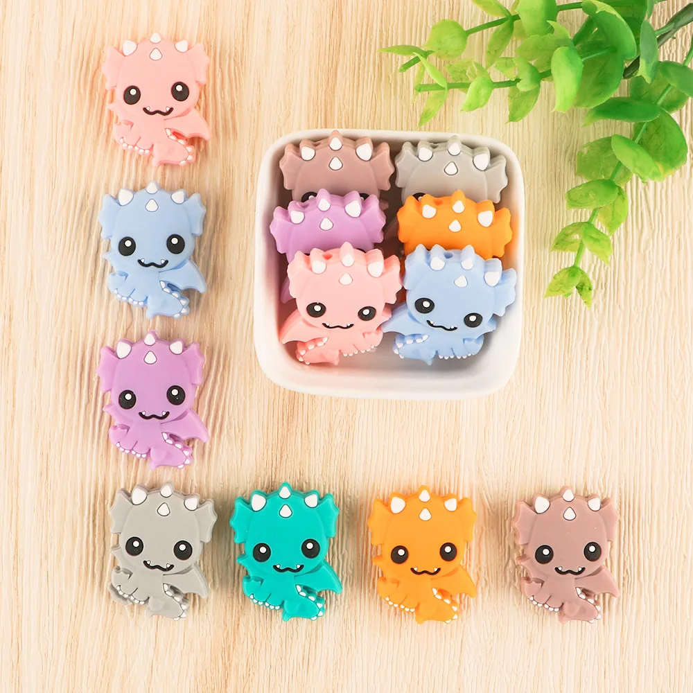 Cuentas de silicona de animales de dibujos animados para la fabricación de joyas, cadena de chupete DIY, perezoso, dinosaurio, León, ardilla, ballena, 5 piezas, 10 piezas