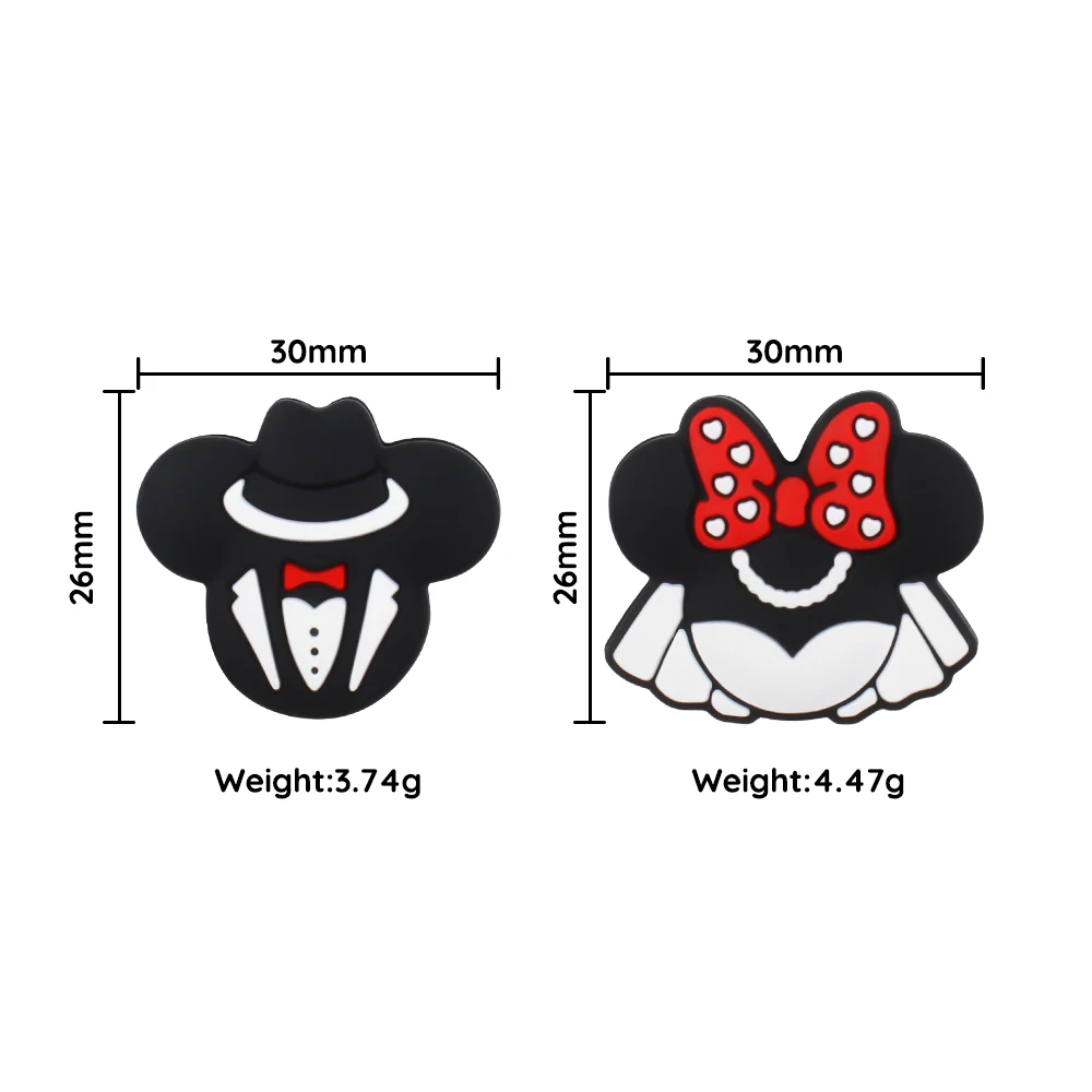 Cuentas de silicona de 5 piezas, soporte para chupete de pezón de ratón de dibujos animados, accesorios de cadena de chupete DIY, juguetes de dentición masticables, BPA gratis