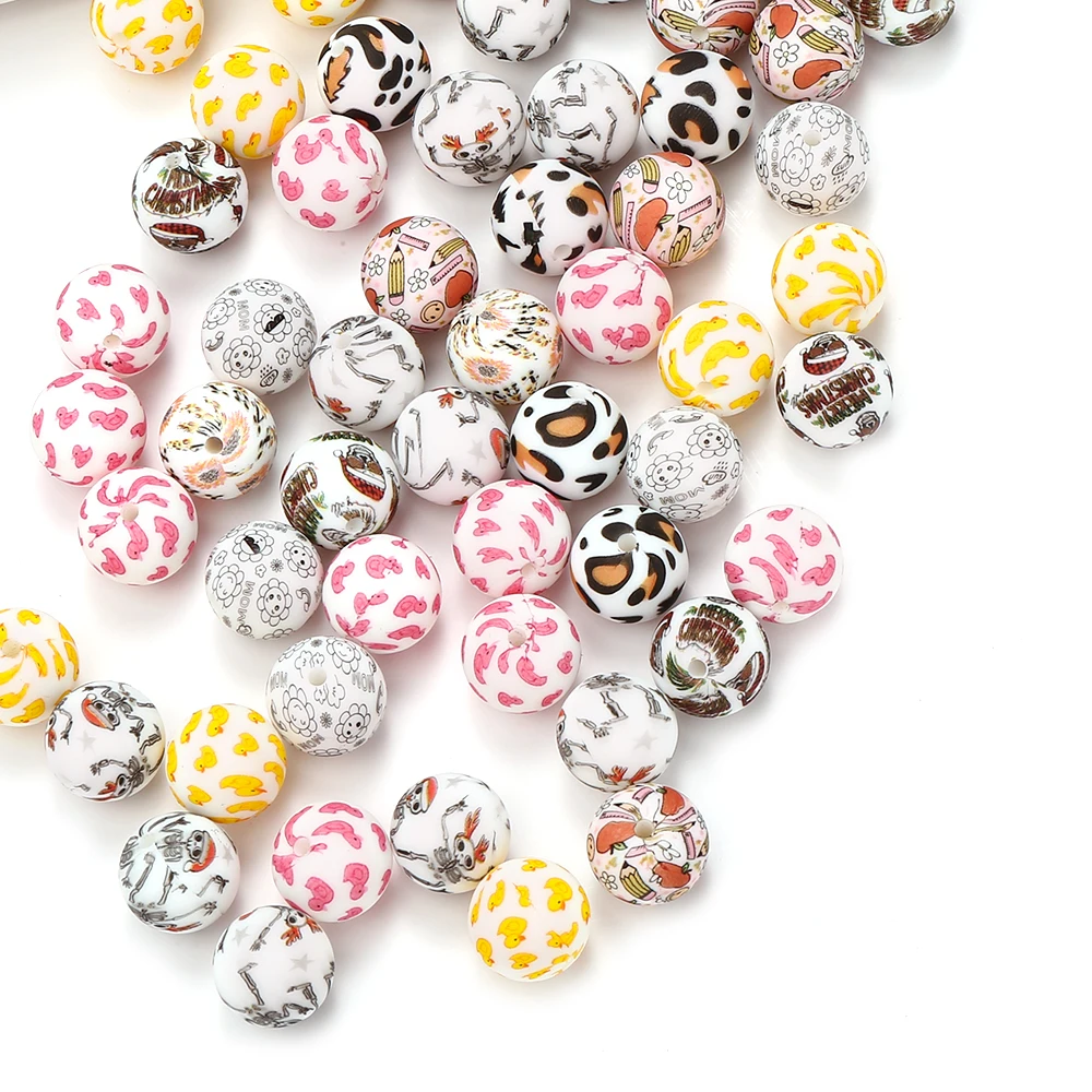 Cuentas de silicona de grado alimenticio para dentición de bebé, collar redondo de 15mm, cadena de chupete, cuentas de dentición, cuentas de Bpa, 10 piezas