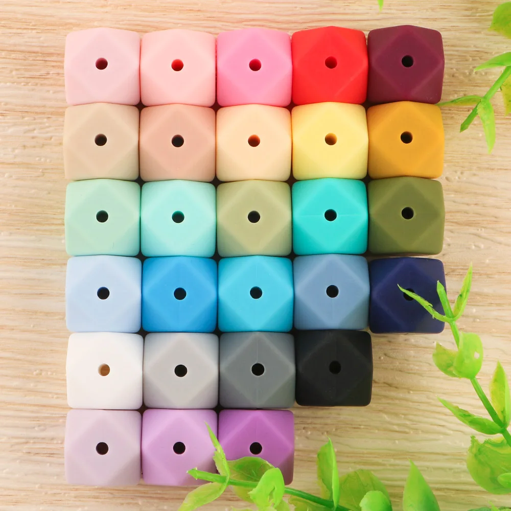 Comprar Cuentas de silicona hexaedro de 17MM para bebé, mordedores de silicona para dientes, collar DIY, cadena de chupete, accesorios para bebé sin BPA, 20 unidades por lote