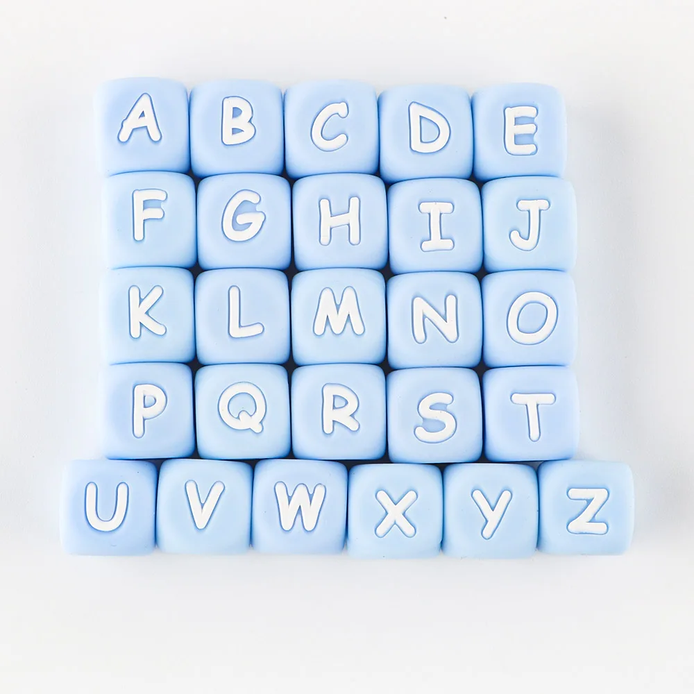 Cuentas de Silicona con Letras del Alfabeto, Letras del Alfabeto Azul, 12mm, 10mm, Letras para Fabricación de Joyas, Accesorios de Cadena de Chupete DIY