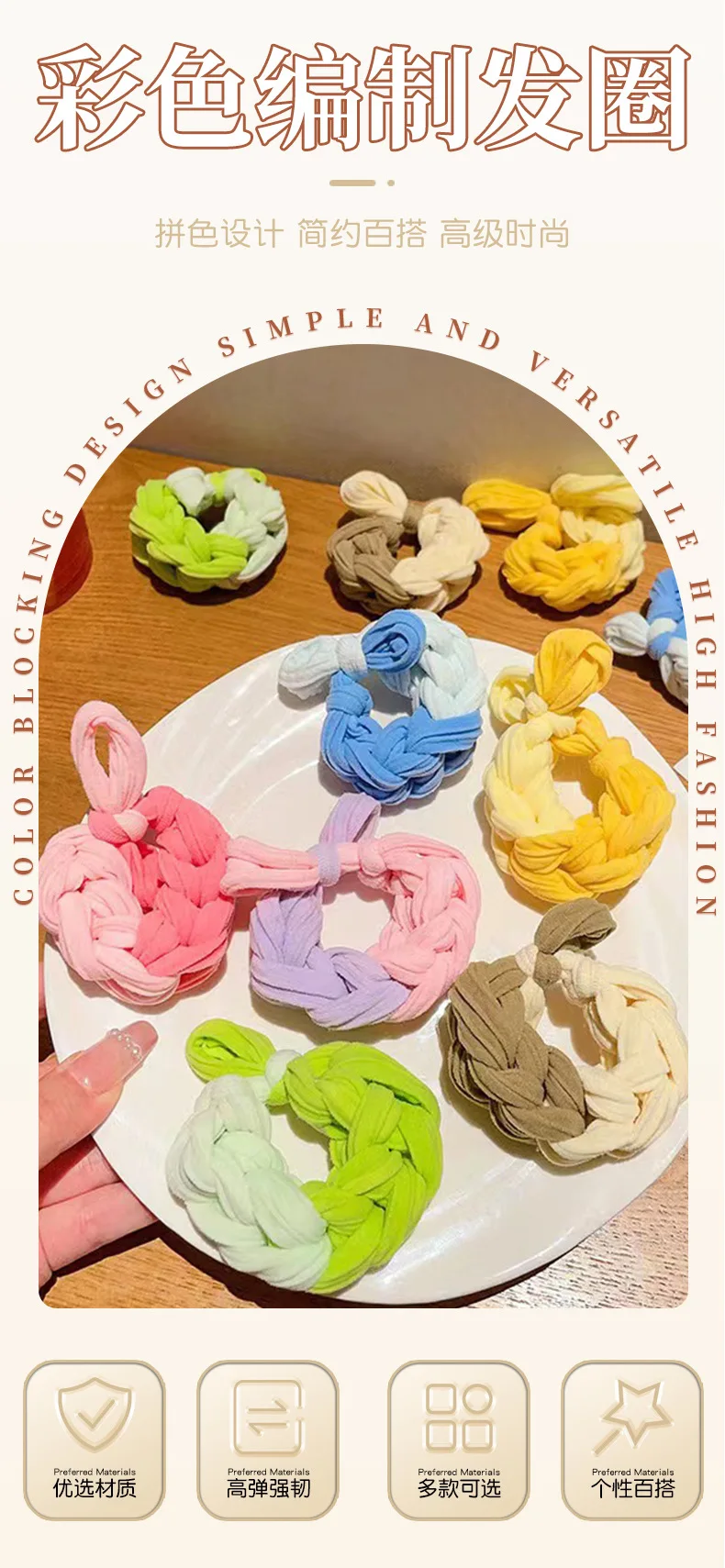 Cuerda para el cabello con cola de caballo, banda para el cabello trenzada de colores, cuerda para la cabeza para mujer, nueva cabeza de lazo de alta gama, banda de goma, alta elasticidad
