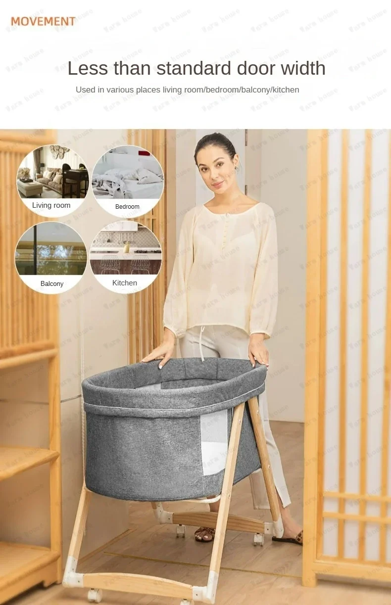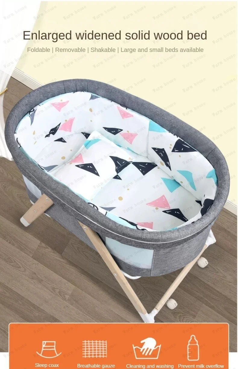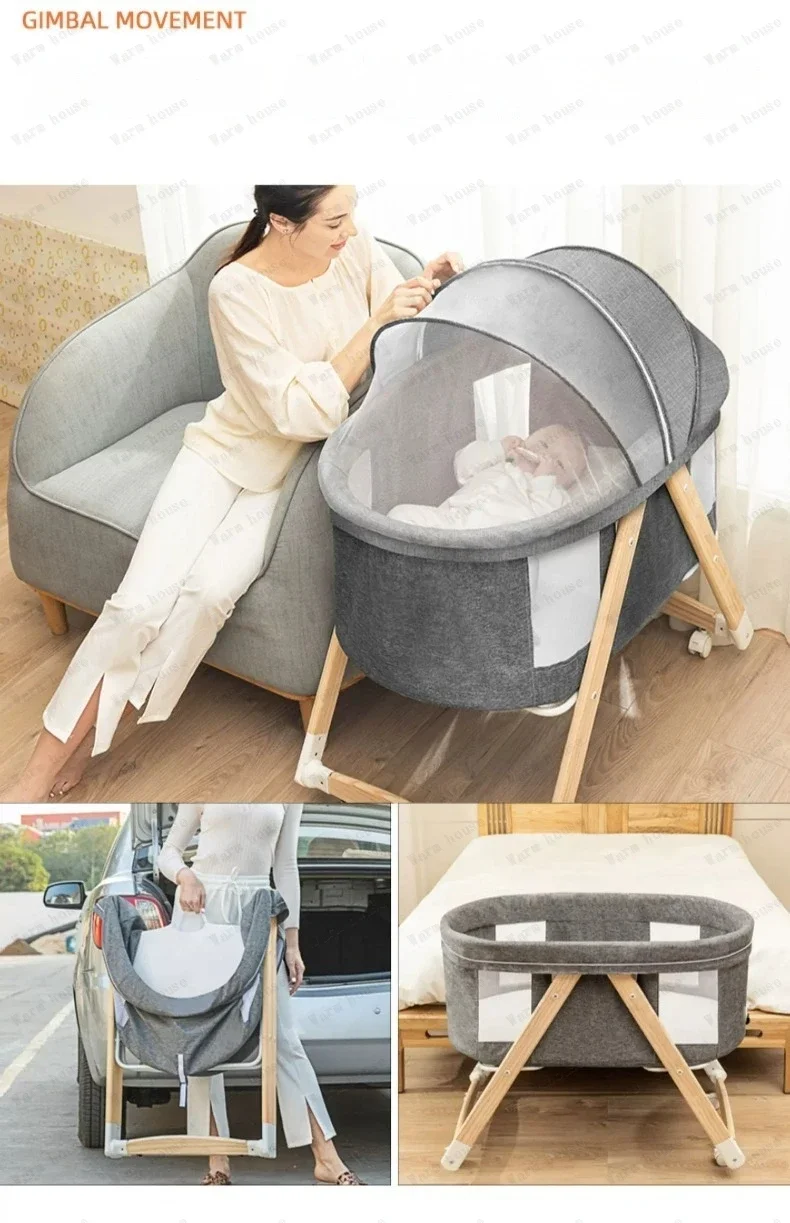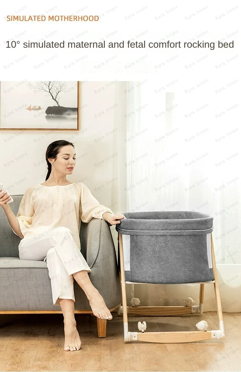 Cuna de bebé móvil de madera maciza, cama portátil para recién nacido, cuna para bebé, cama mecedora doble plegable, cama mecedora relajante para bebé