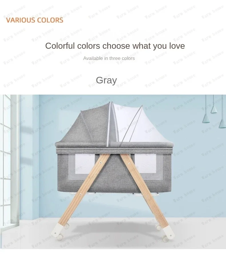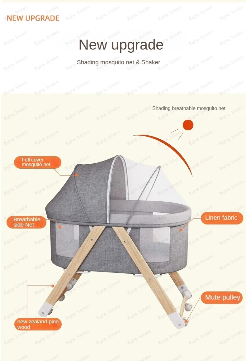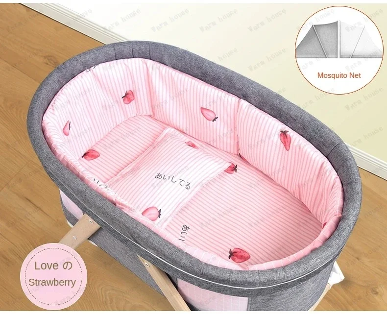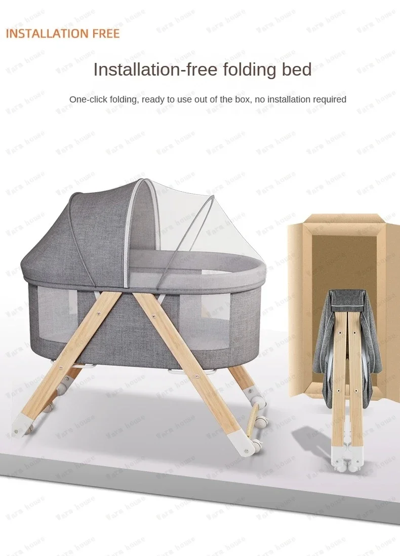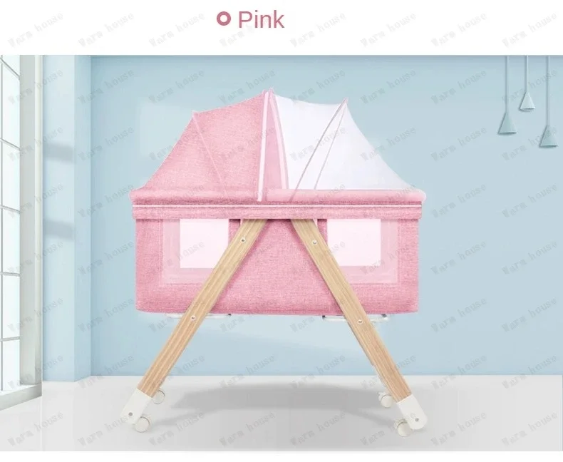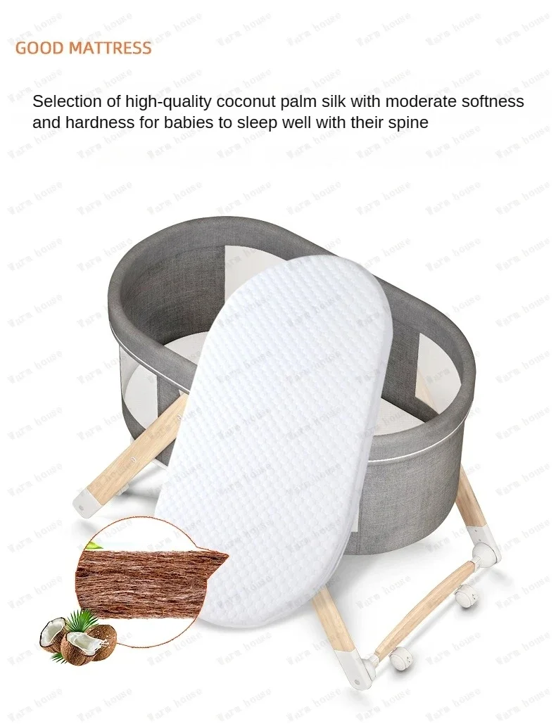 Cuna de bebé móvil de madera maciza, cama portátil para recién nacido, cuna para bebé, cama mecedora doble plegable, cama mecedora relajante para bebé