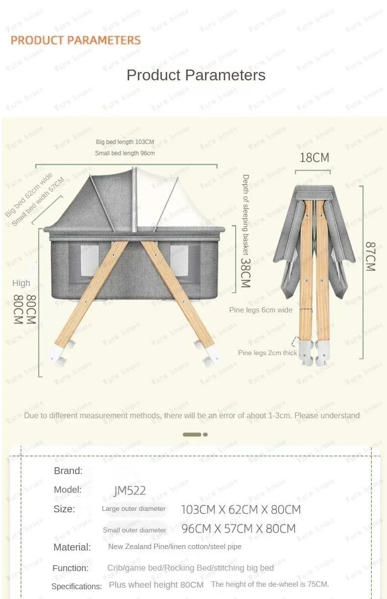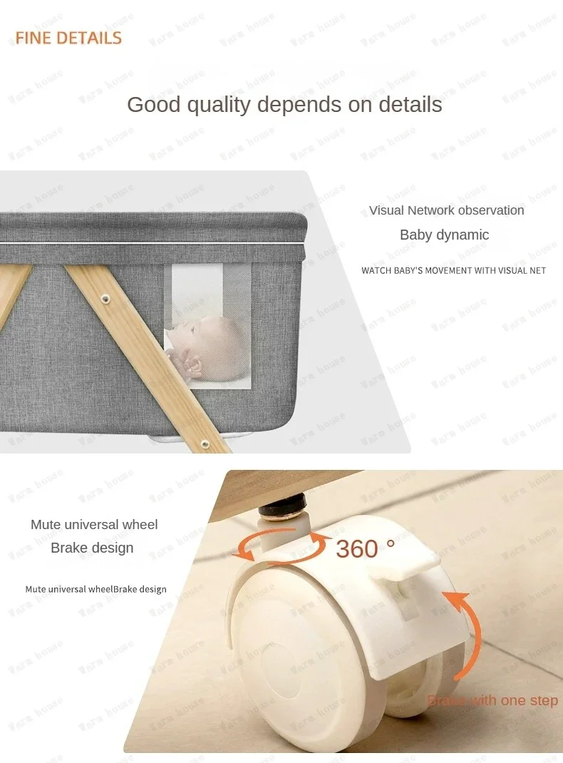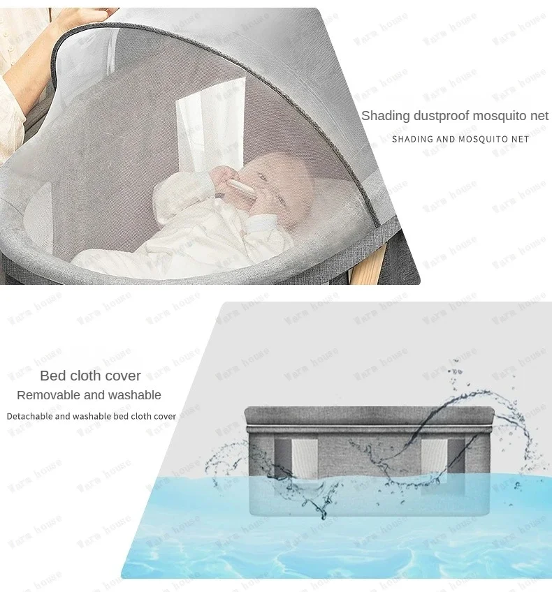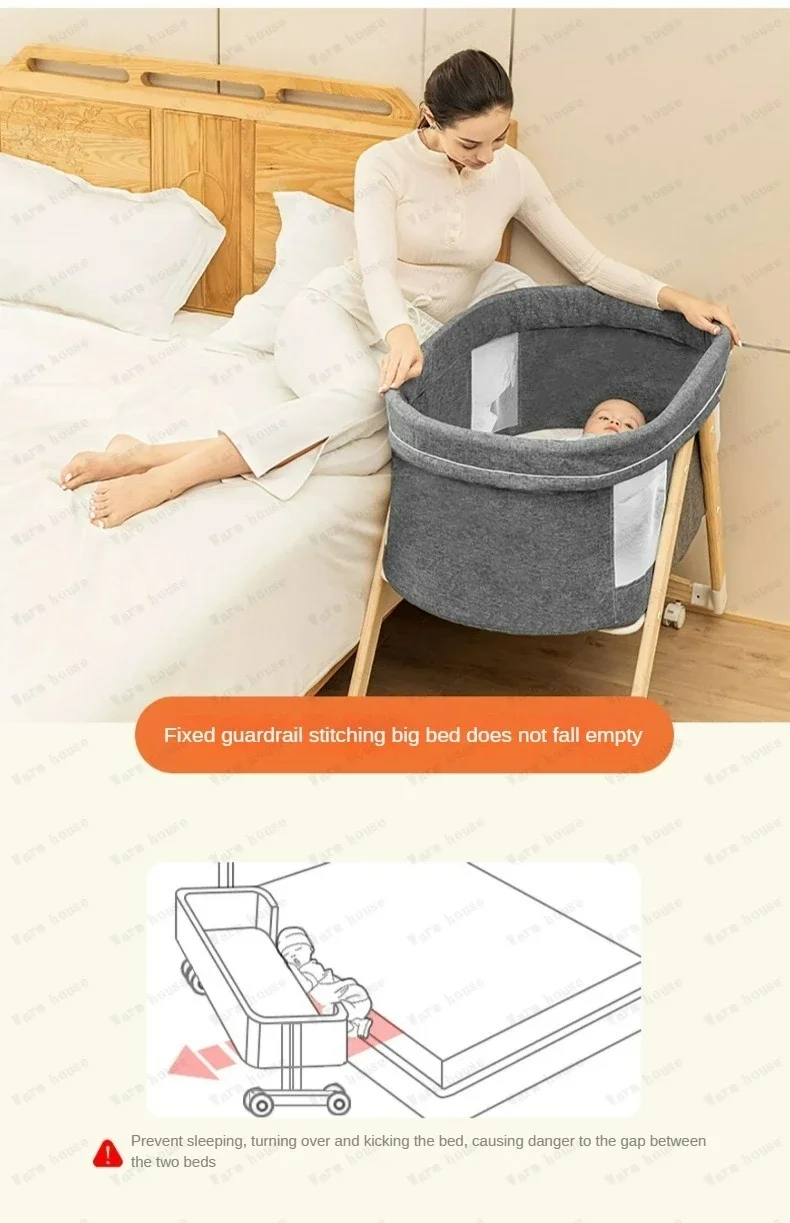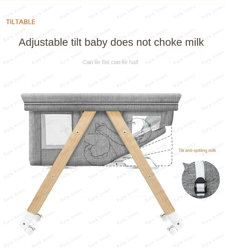 Cuna de bebé móvil de madera maciza, cama portátil para recién nacido, cuna para bebé, cama mecedora doble plegable, cama mecedora relajante para bebé