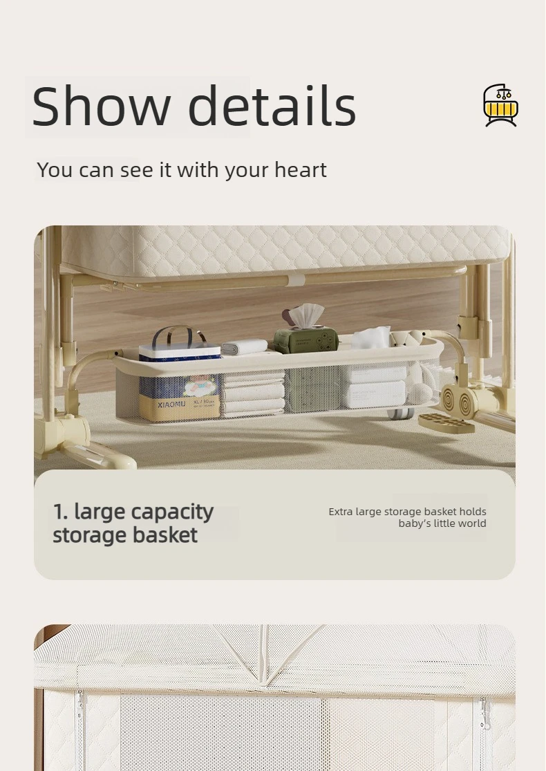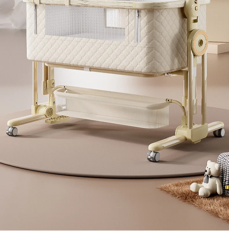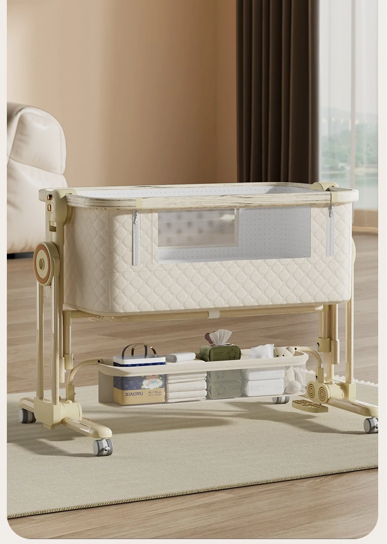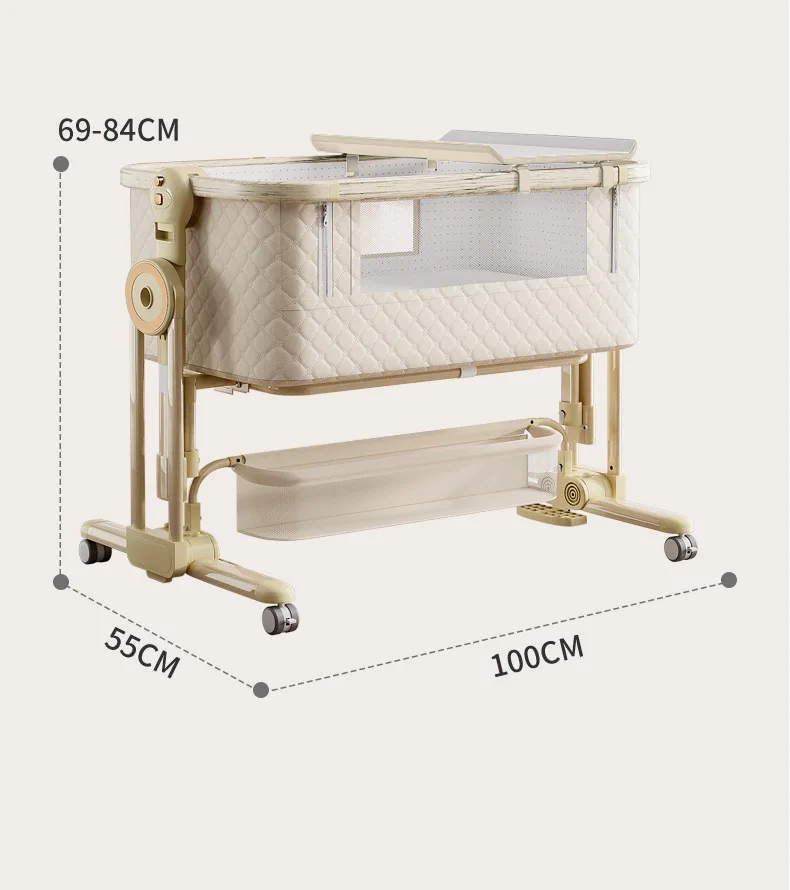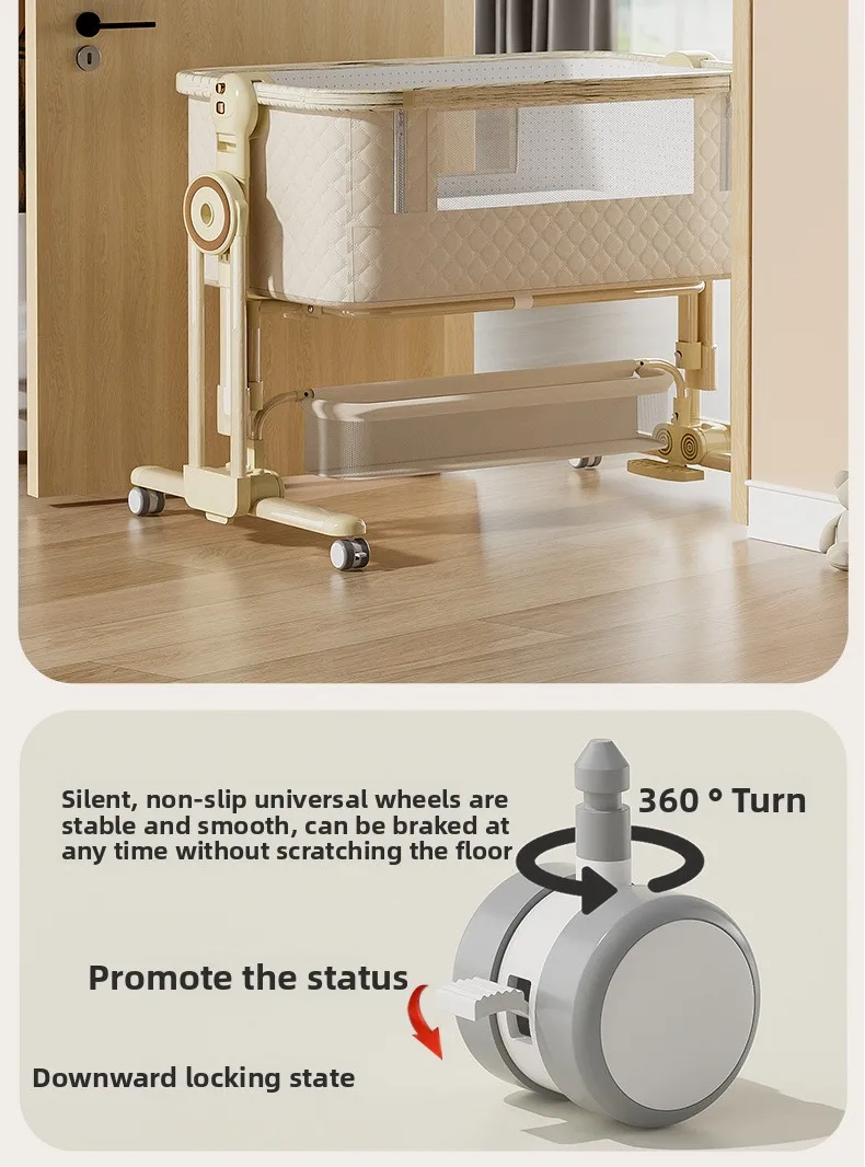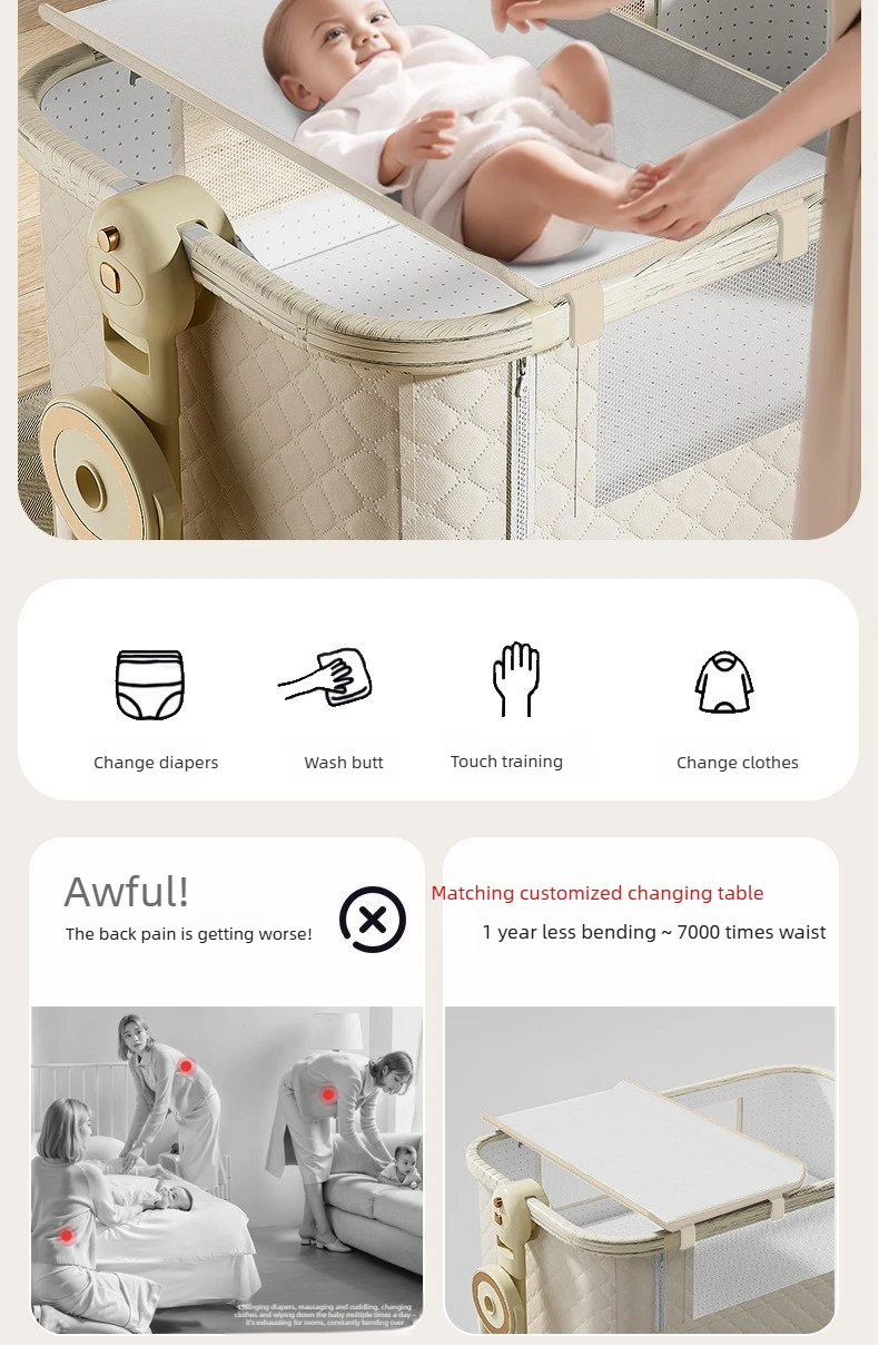 Cuna de bebé multifuncional con ruedas, mesas para cambiar pañales, cuna de aleación de aluminio, cuna portátil plegable, cama empalmada para recién nacido
