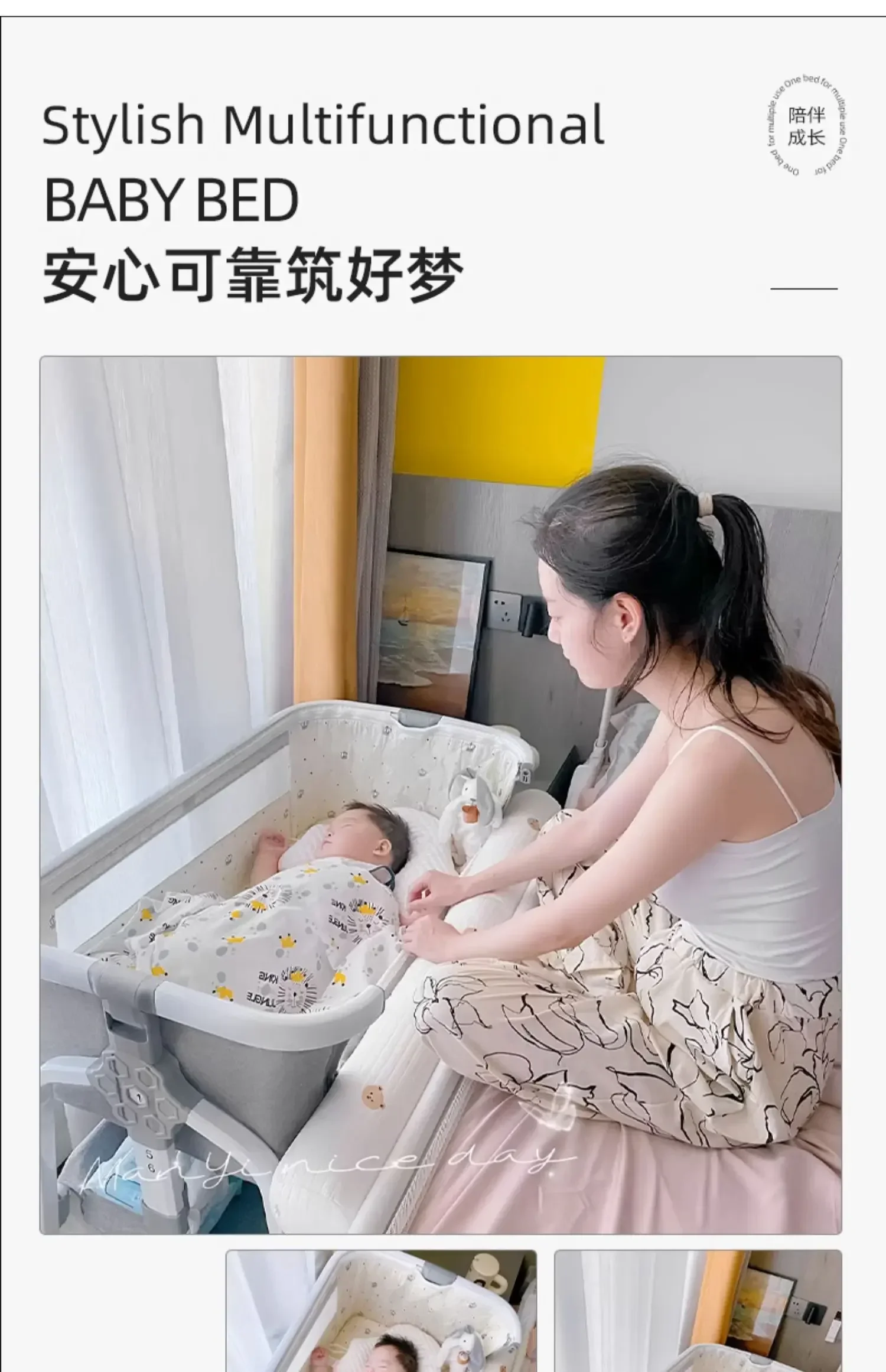 Comprar Cuna de bebé plegable y empalmada, cama portátil grande, cuna móvil multifuncional para recién nacido