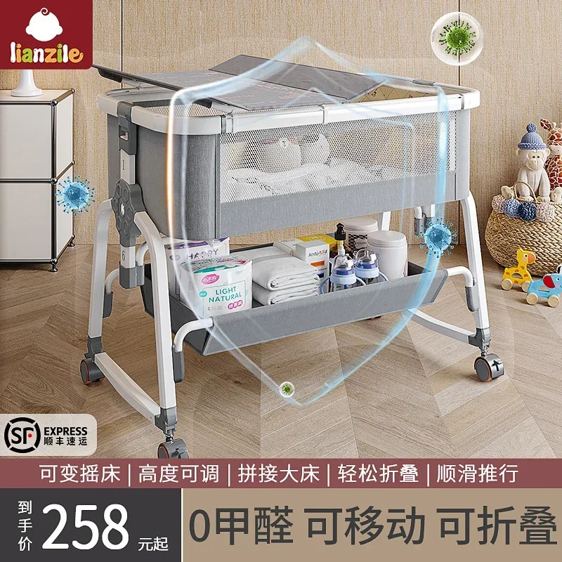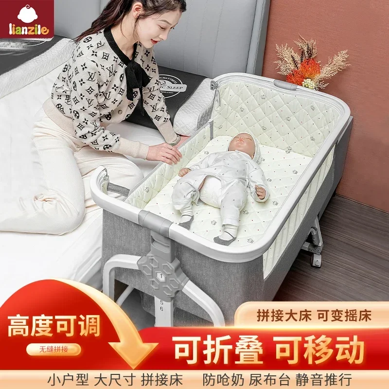 Comprar Cuna de bebé plegable y empalmada, cama portátil grande, cuna móvil multifuncional para recién nacido