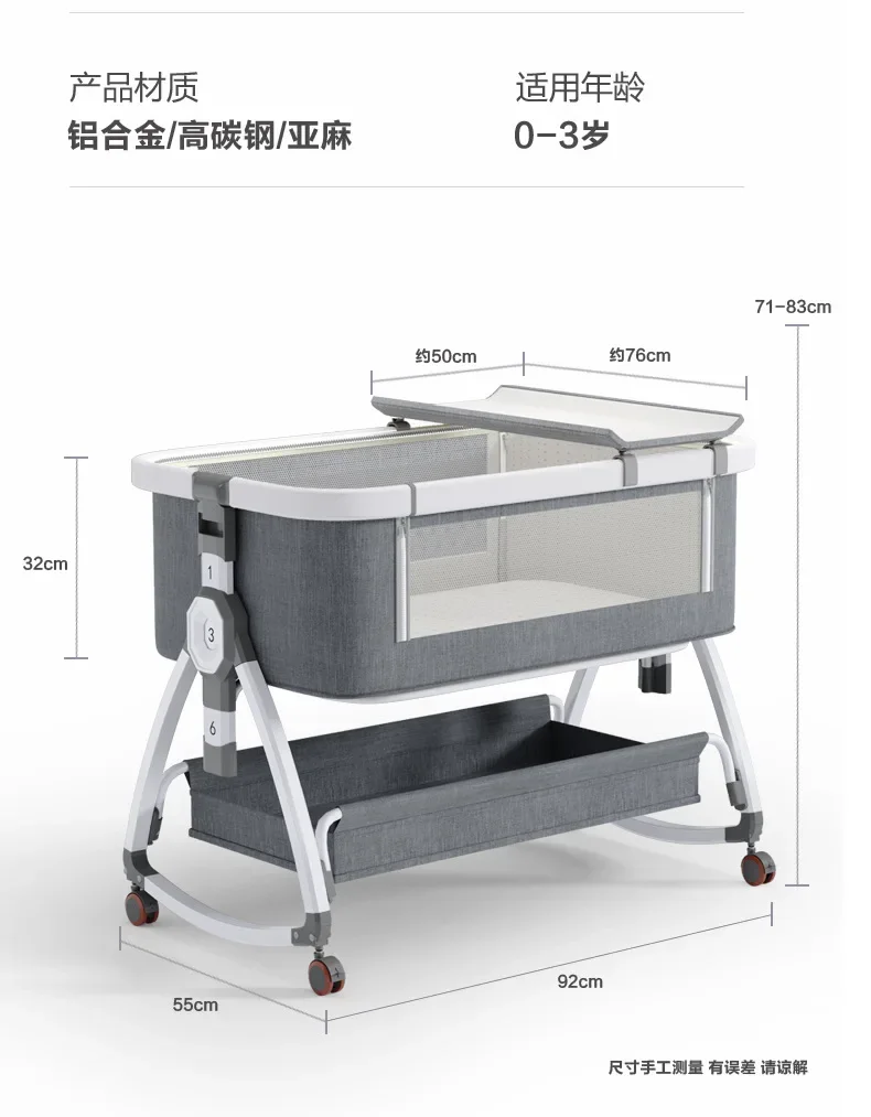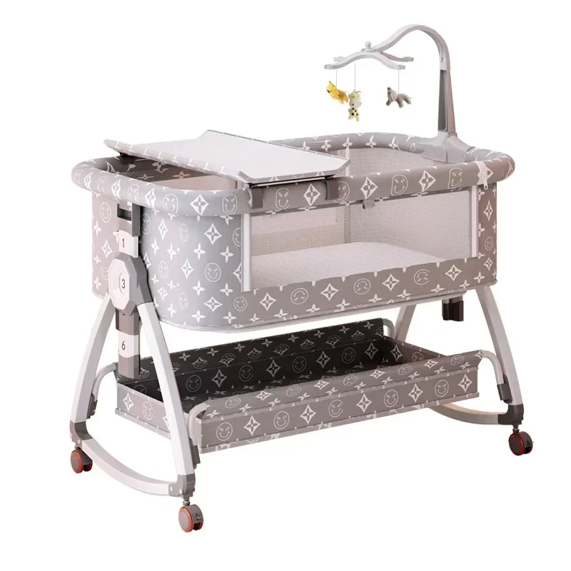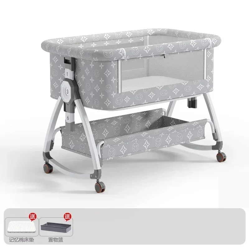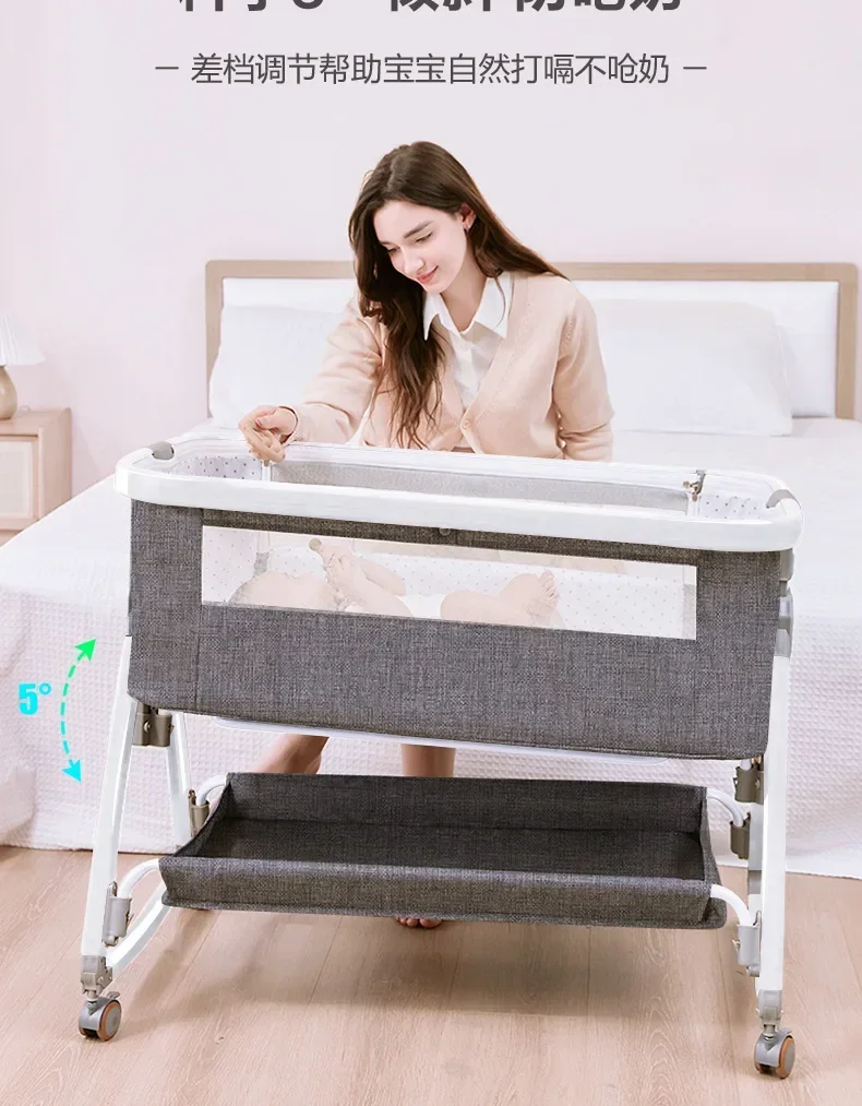 Comprar Cuna de bebé portátil y móvil, cama grande de empalme ajustable en altura plegable, cuna para bebé, cama Bb, leche antidesbordamiento