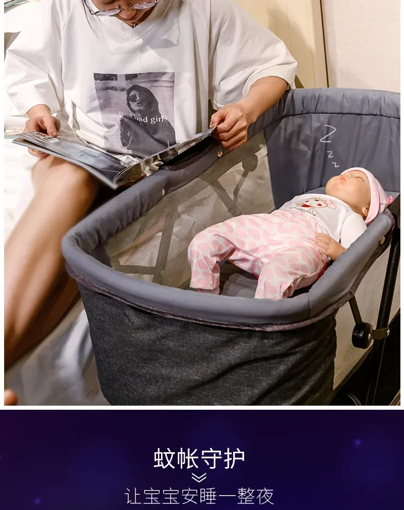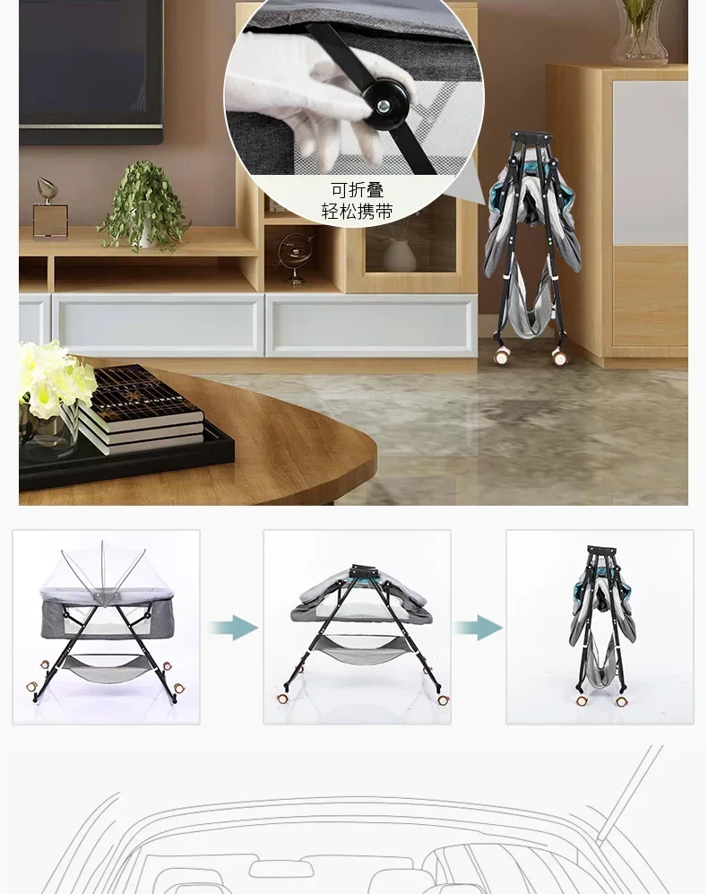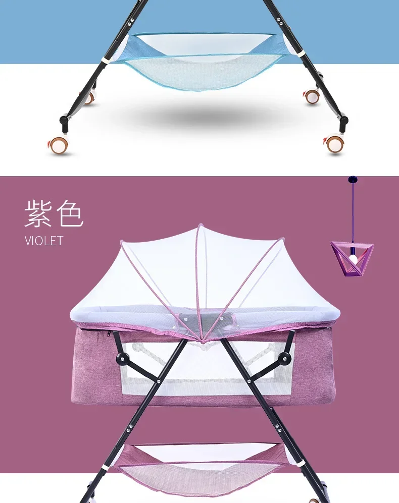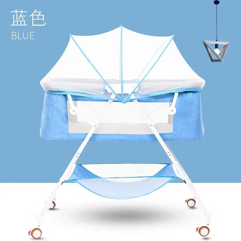 Cuna para bebé recién nacido, cochecito de bebé portátil calmante y calmante, cuna plegable de estilo europeo para dormir, color azul